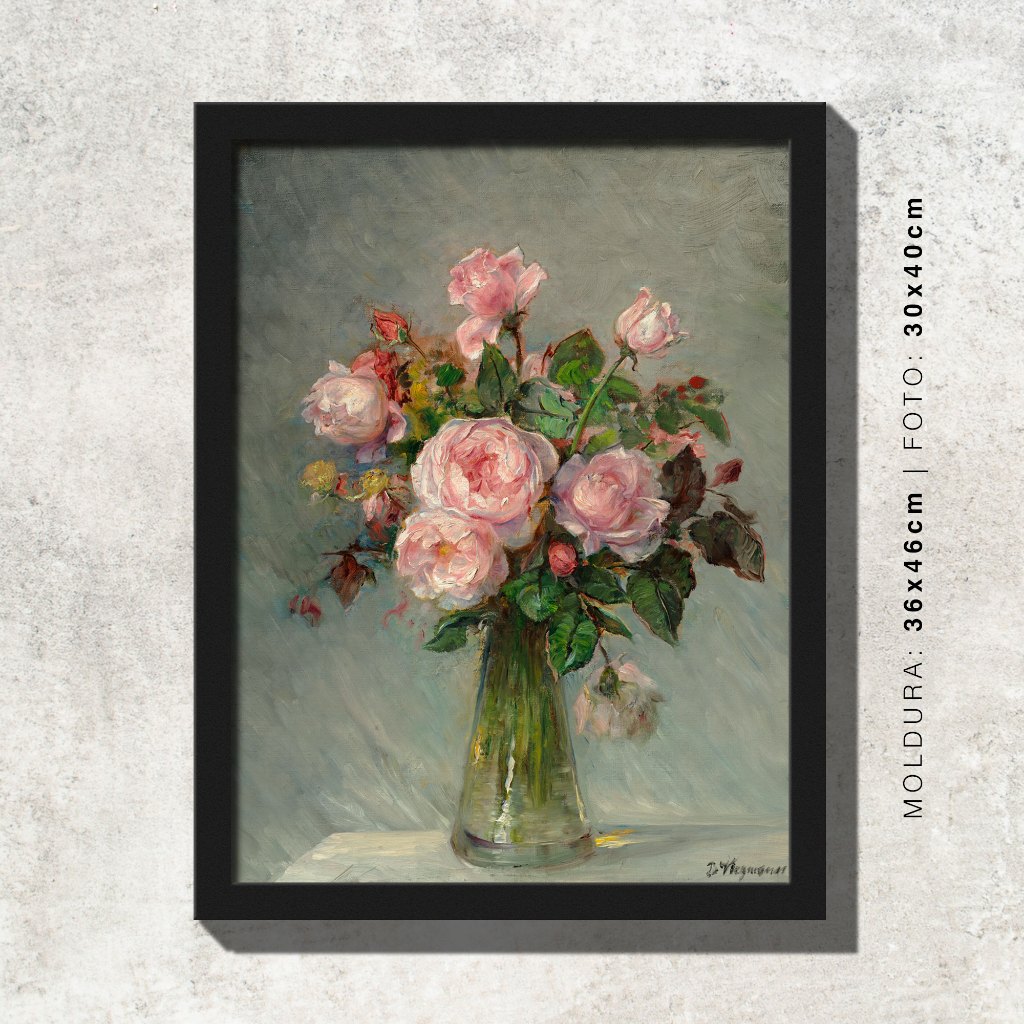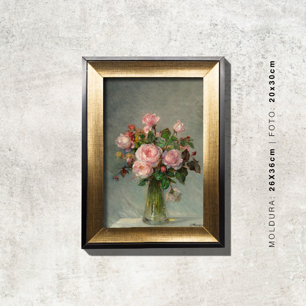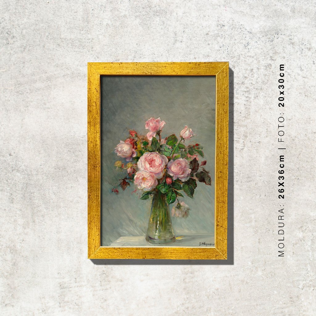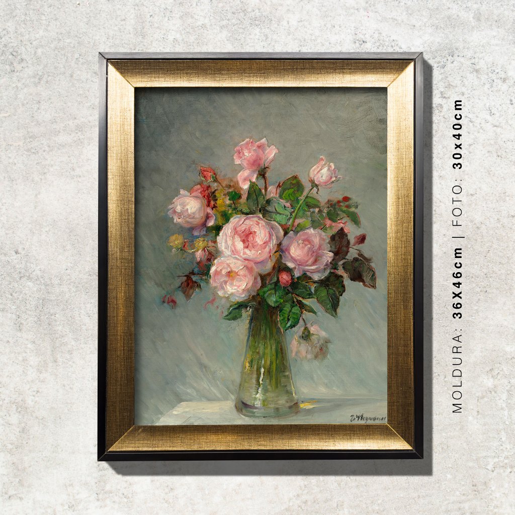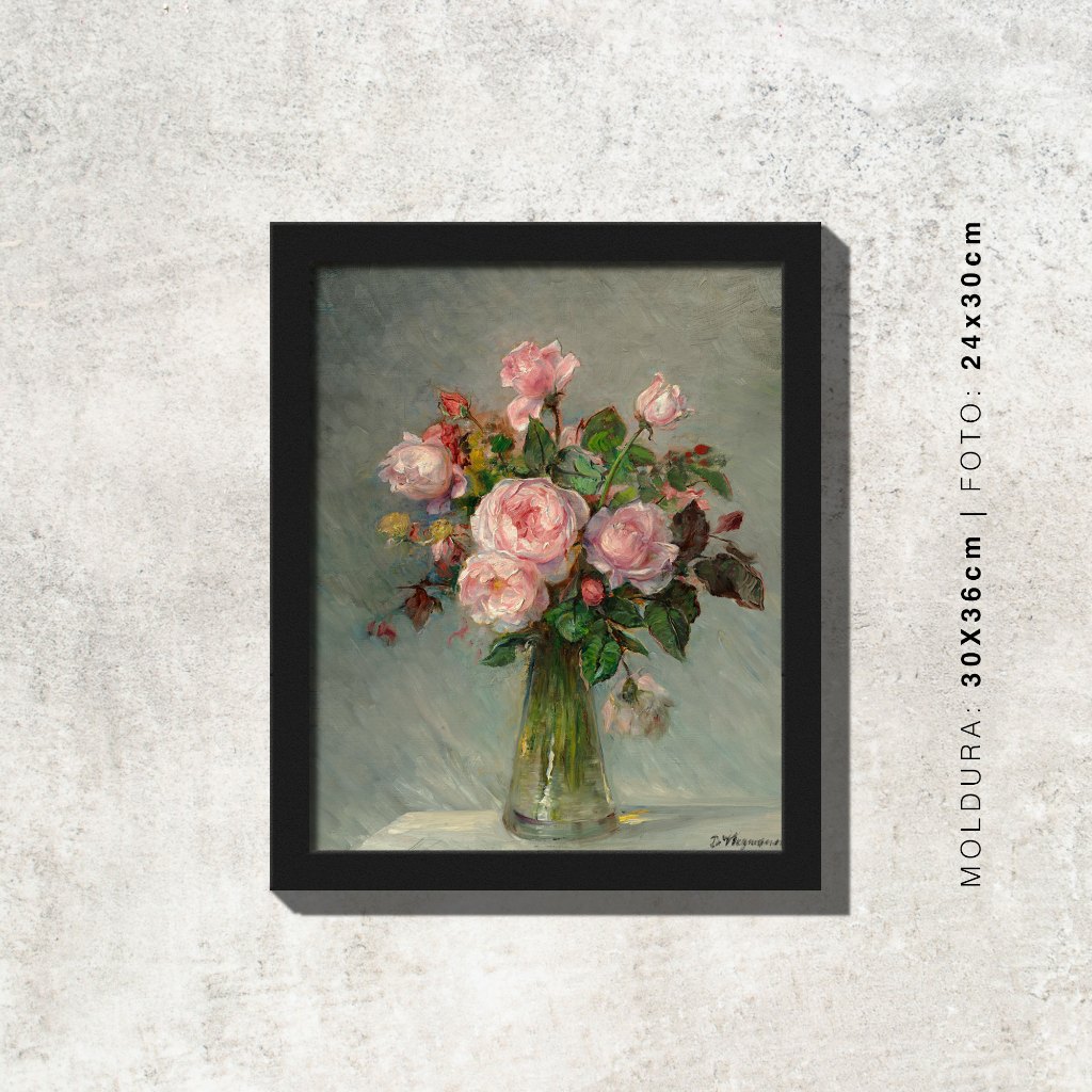 Quadro - Rosas num Vaso de Vidro - Bertha Wegmann - Moldura em Madeira