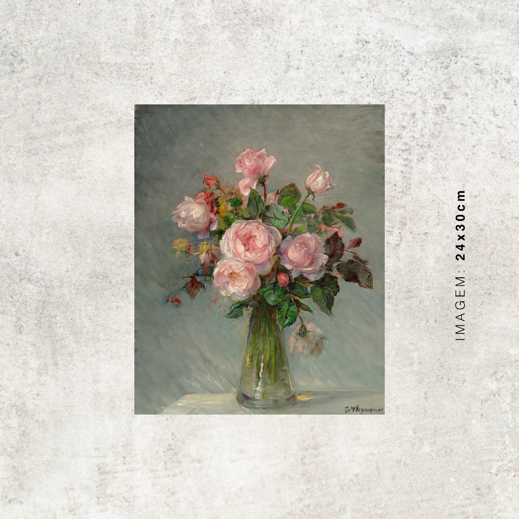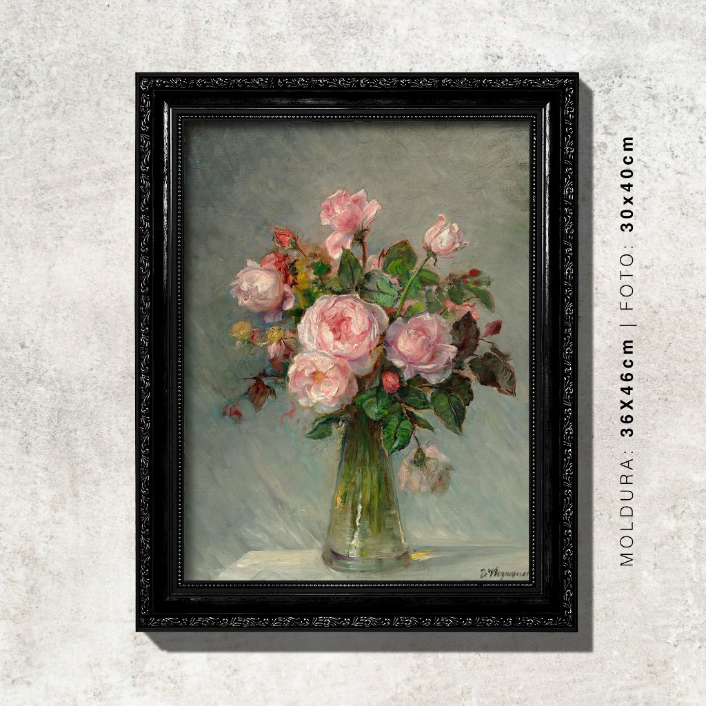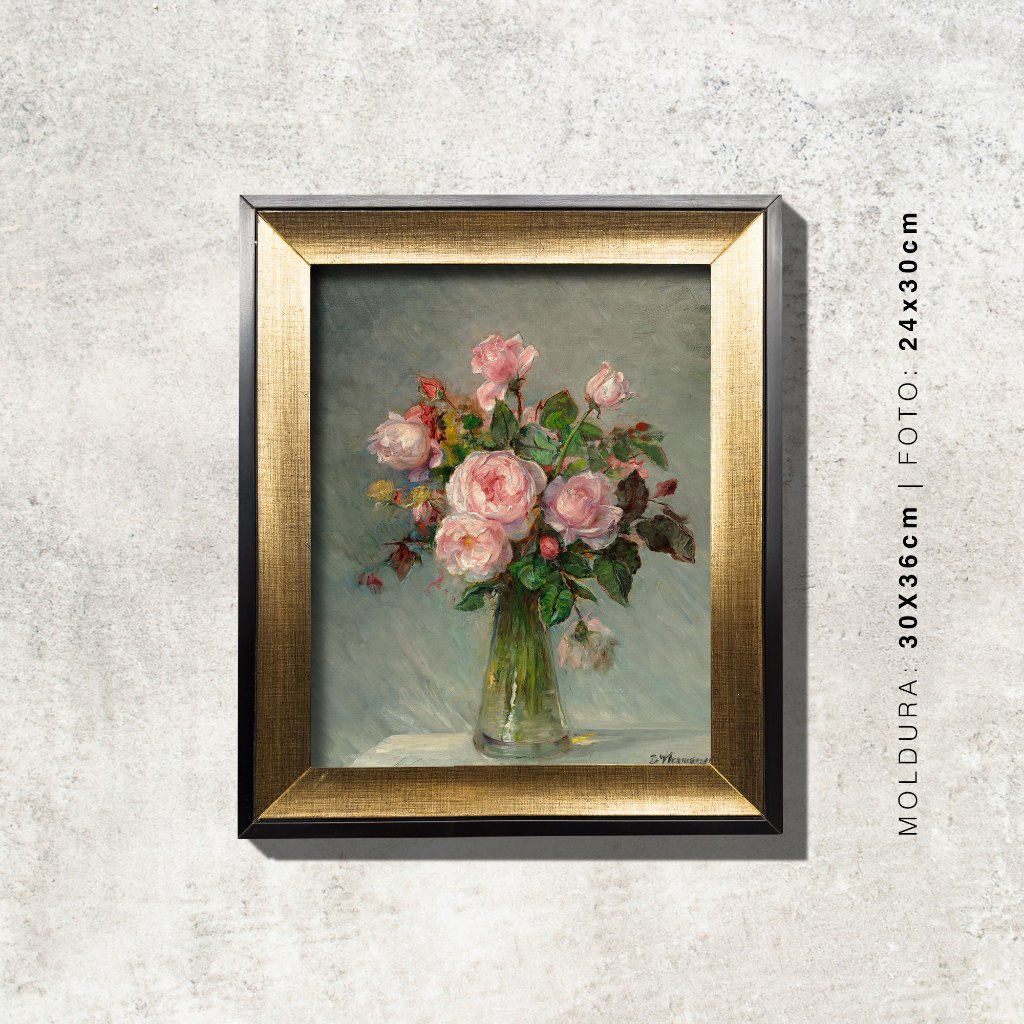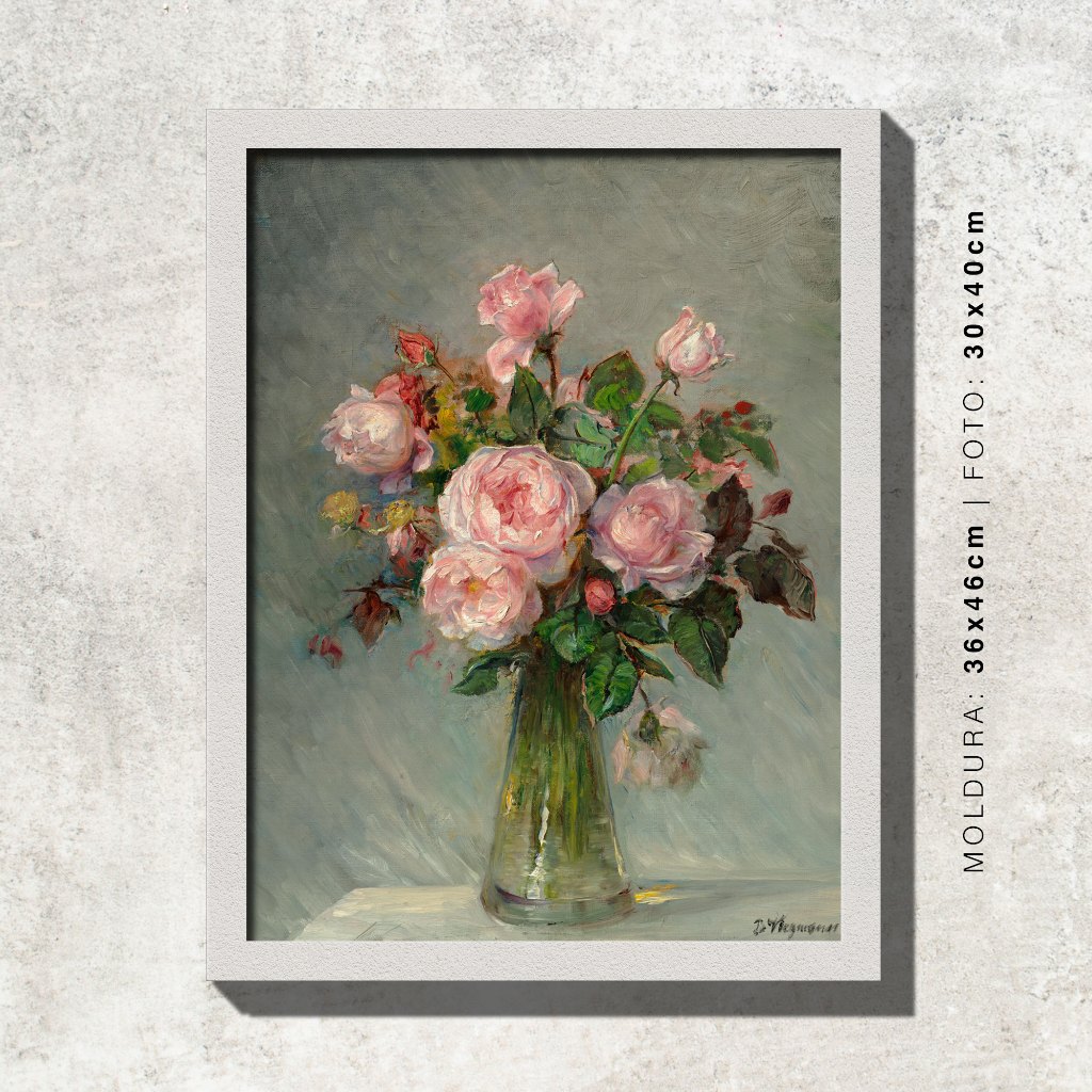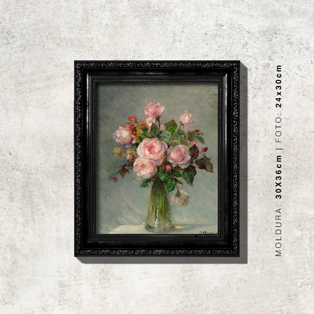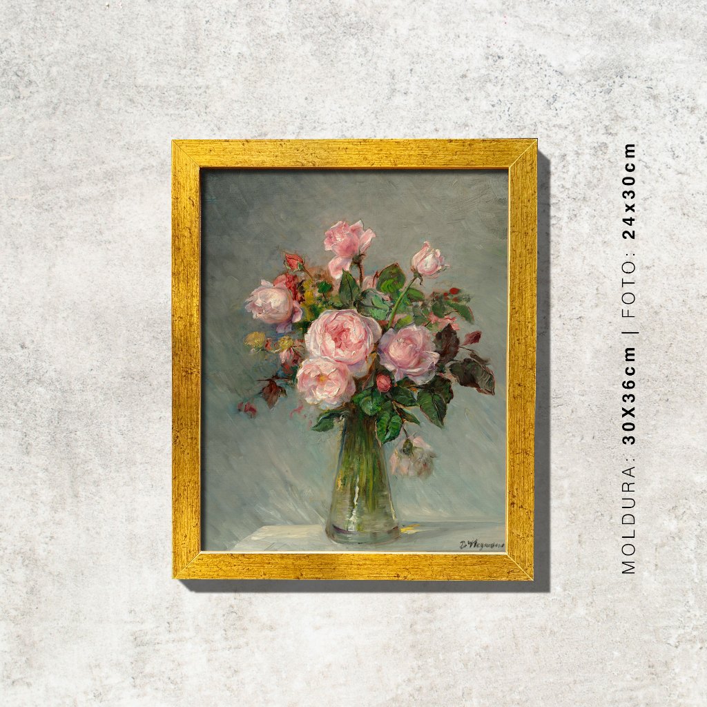Quadro - Rosas num Vaso de Vidro - Bertha Wegmann - Moldura em Madeira
