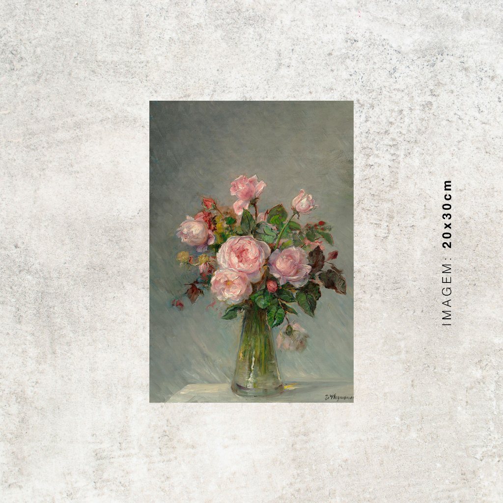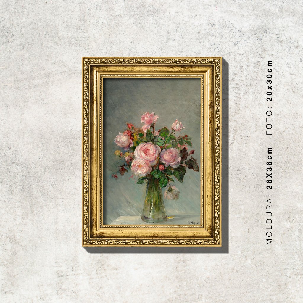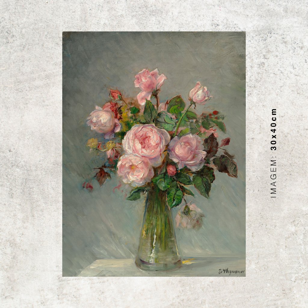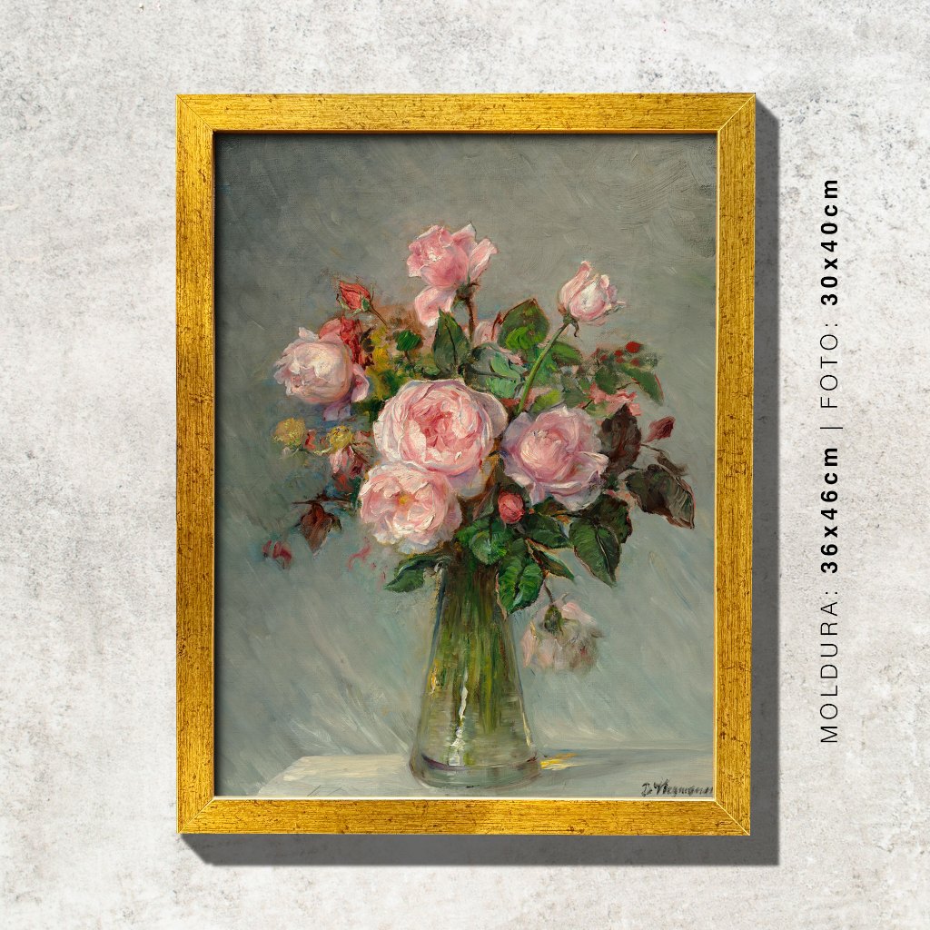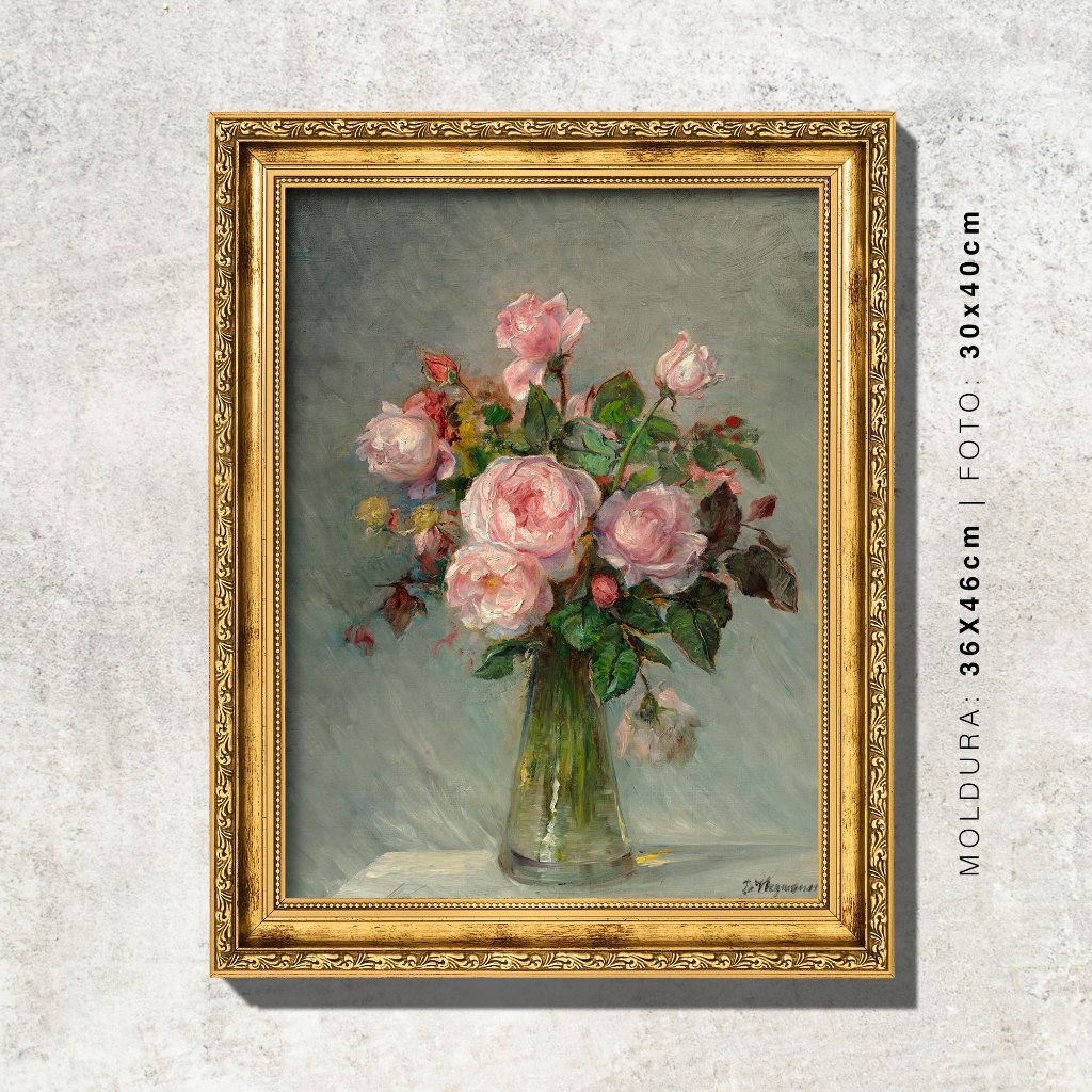 Quadro - Rosas num Vaso de Vidro - Bertha Wegmann - Moldura em Madeira