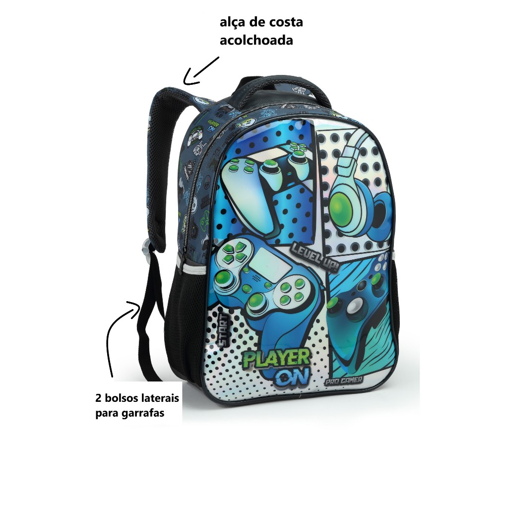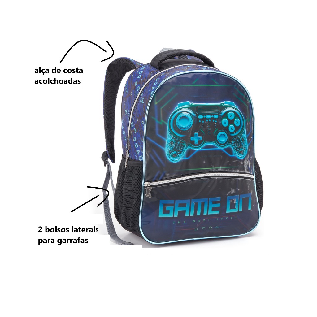 Mochila De Costa Play Gamer Escolar Game Menino Infantil Grande Cor Play Station Controle