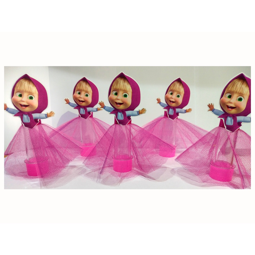 10 Tubetes Personalizados Masha e o Urso 3d Com Saia De Tule com urso