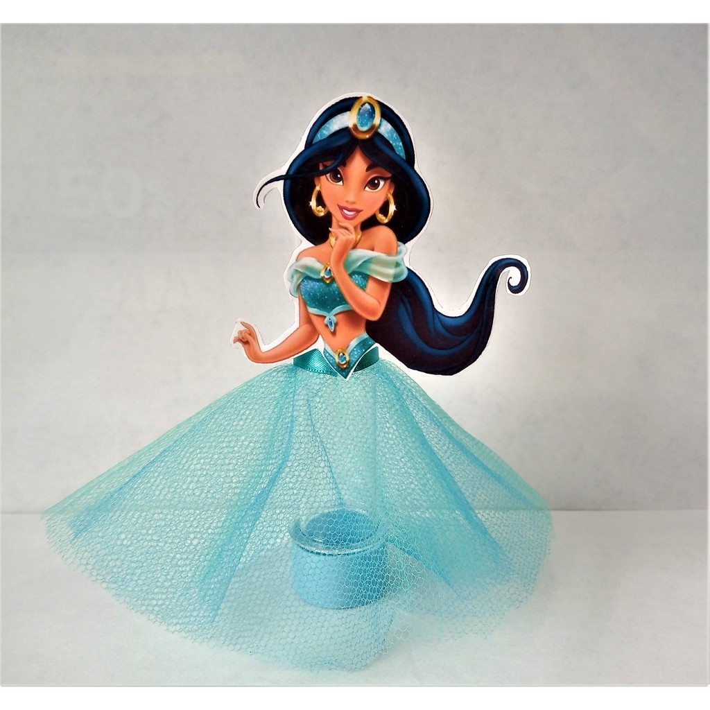20 Tubetes Personalizados Princesa Jasmine 3d Com Saia De Tule
