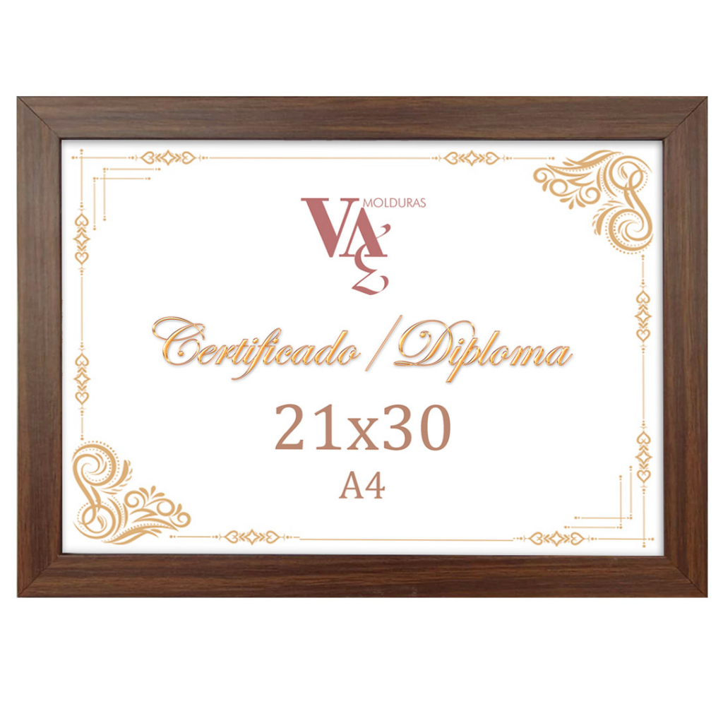 Quadro Moldura Porta Diploma, Certificado, Alvará, Pôster 21x30 Tamanho A4 com Vidro