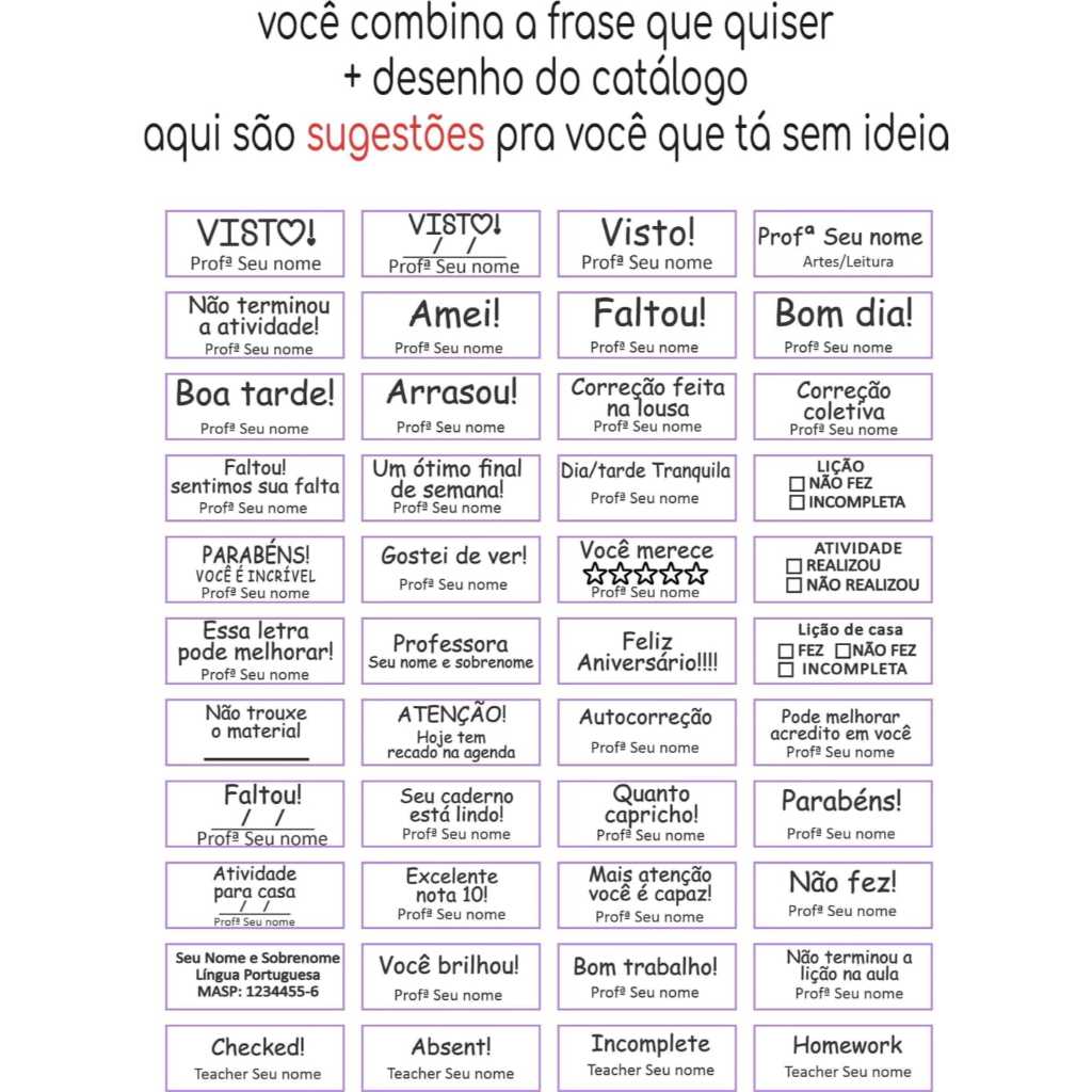 Kit com 6 carimbos para professores- carimbos pedagógicos