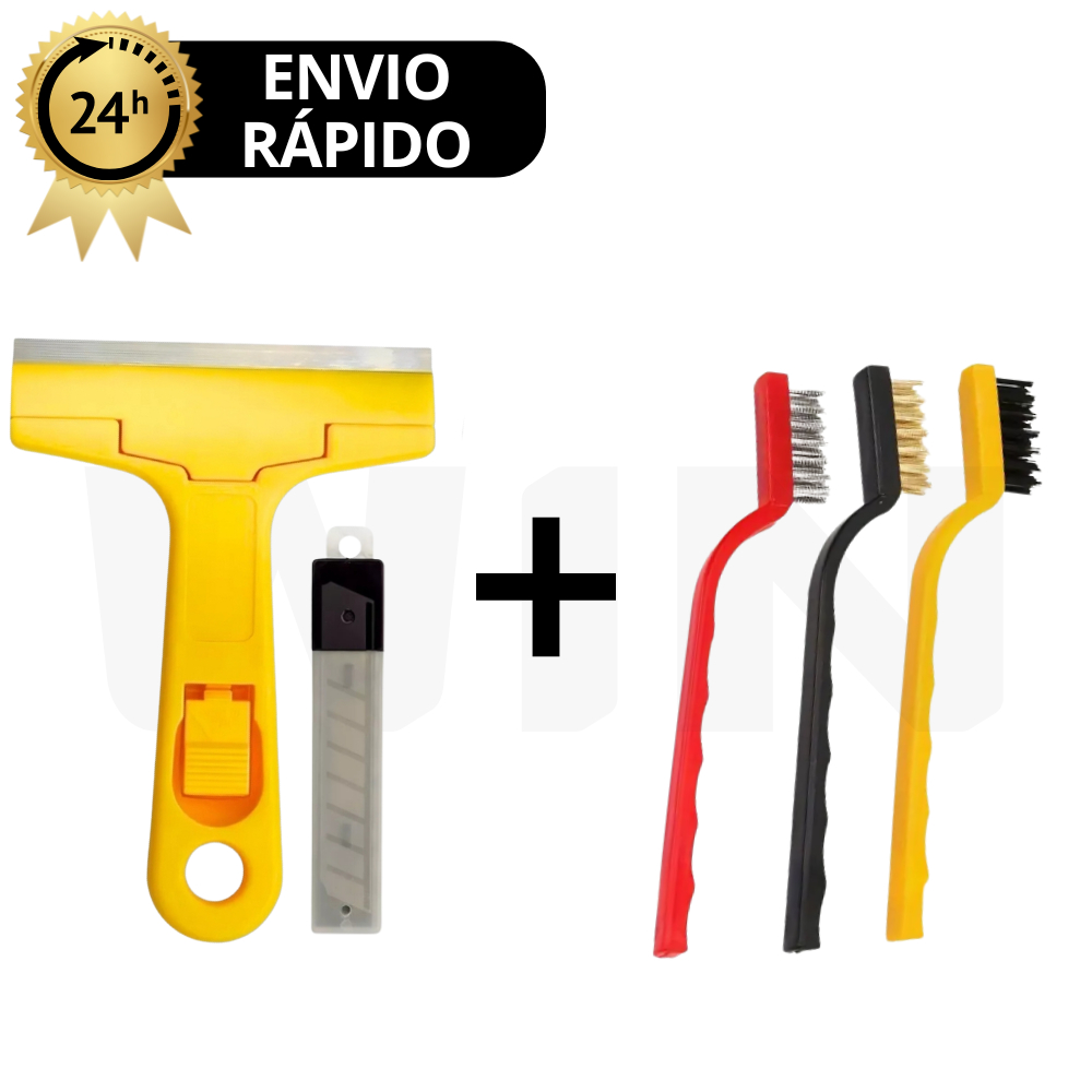 Kit 3 UN escova de aco para limpeza Multiuso forno grelha fogão Aço Latão Nylon + Raspador para limpar Box Piso Vidro