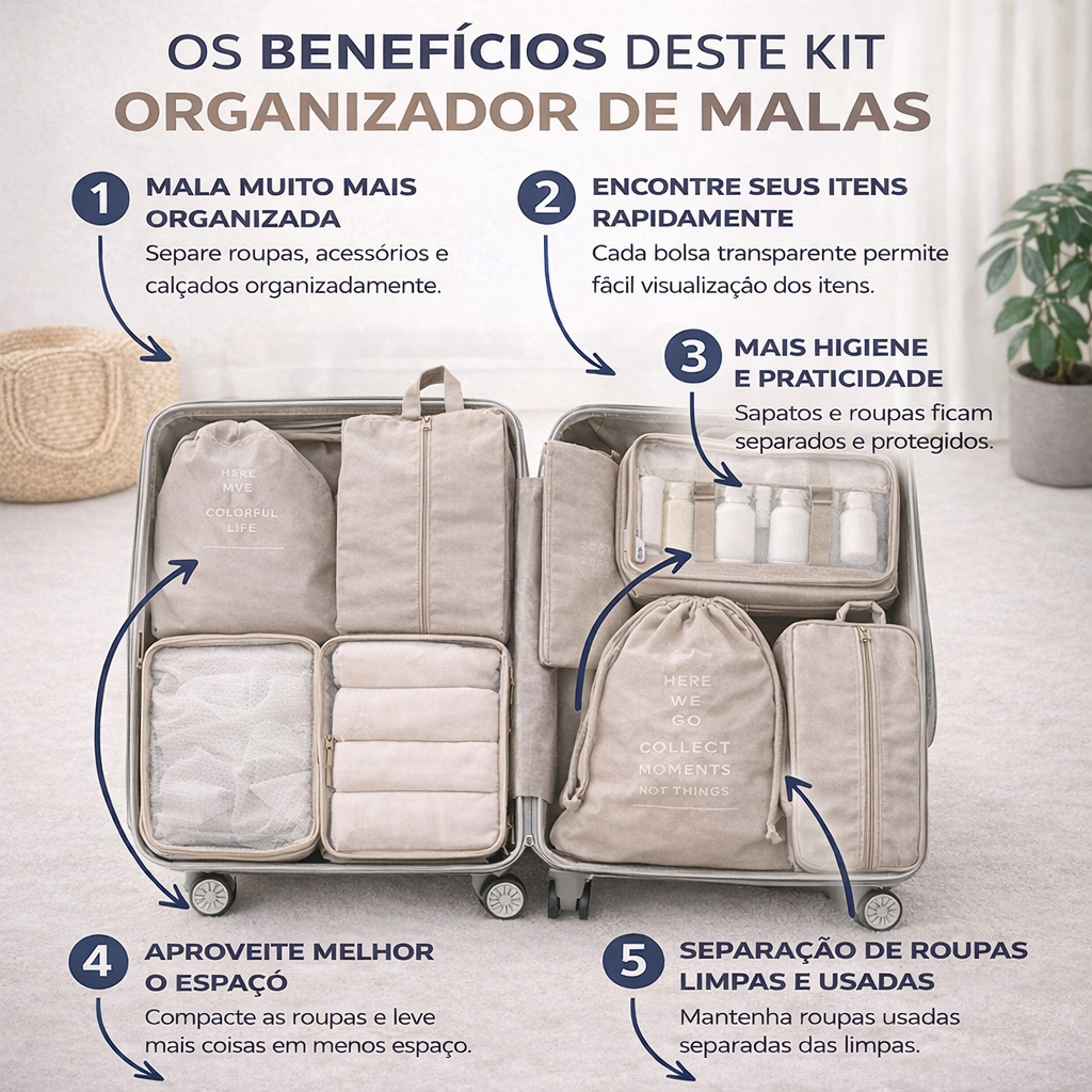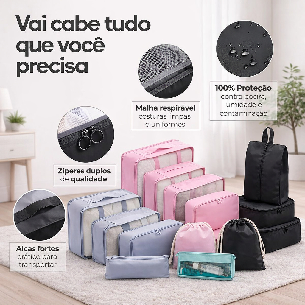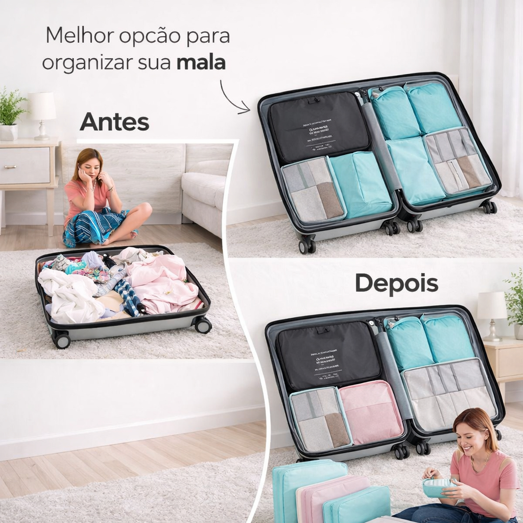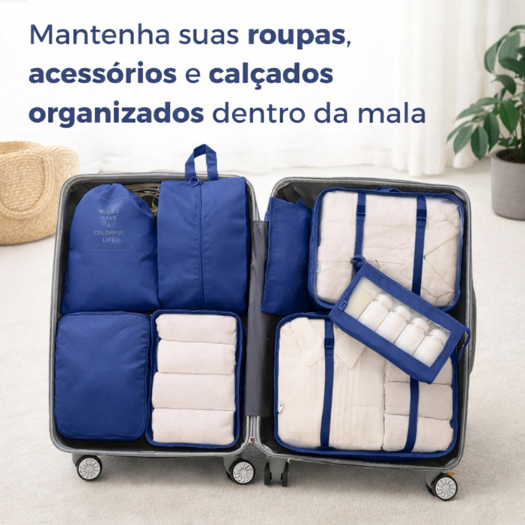 Kit 8 Peças Organizadoras De Viagens Conjunto Organizador de Bagagem Para Malas e Bolsas