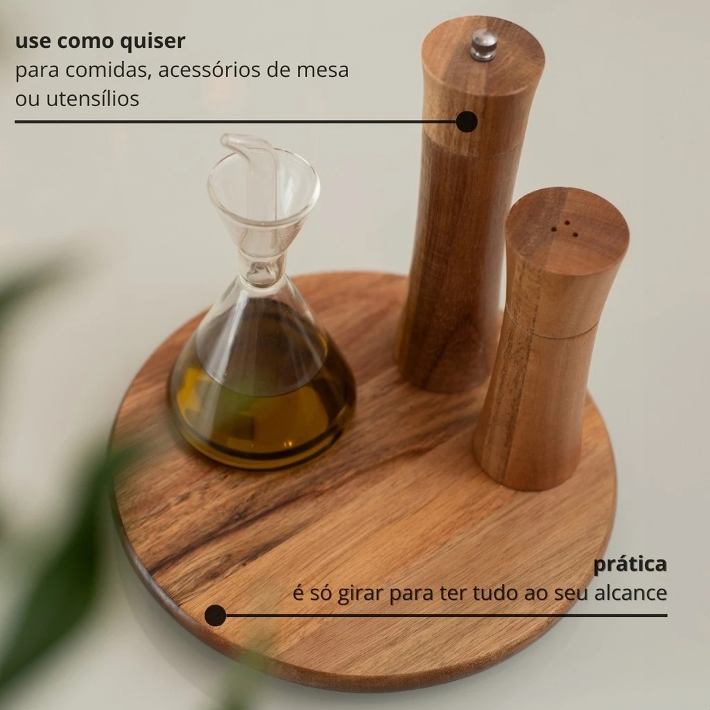 Tábua Petisqueira com Base Giratória de Acácia 25Cm - Oikos