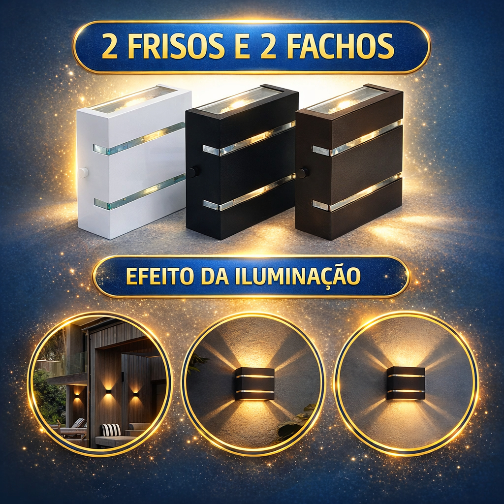 Kit 3 Arandela Externa e Interna Luminária Slim 110/220V Para Parede Muro Jardim Garagem Fachadas