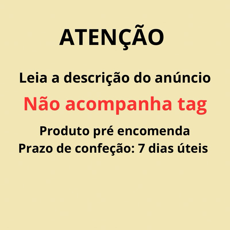 Sob encomenda: envio após 5 dias da compra
