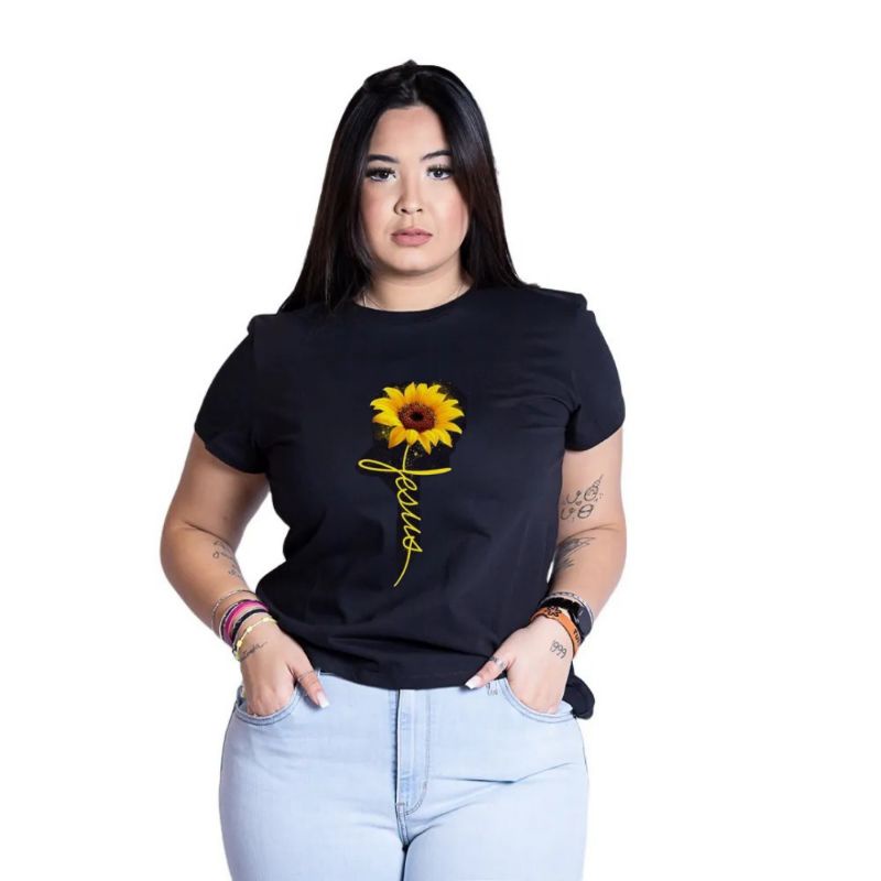 PLUS SIZE CAMISETA BLUSINHA FEMININA GIRASSOL JESUS c