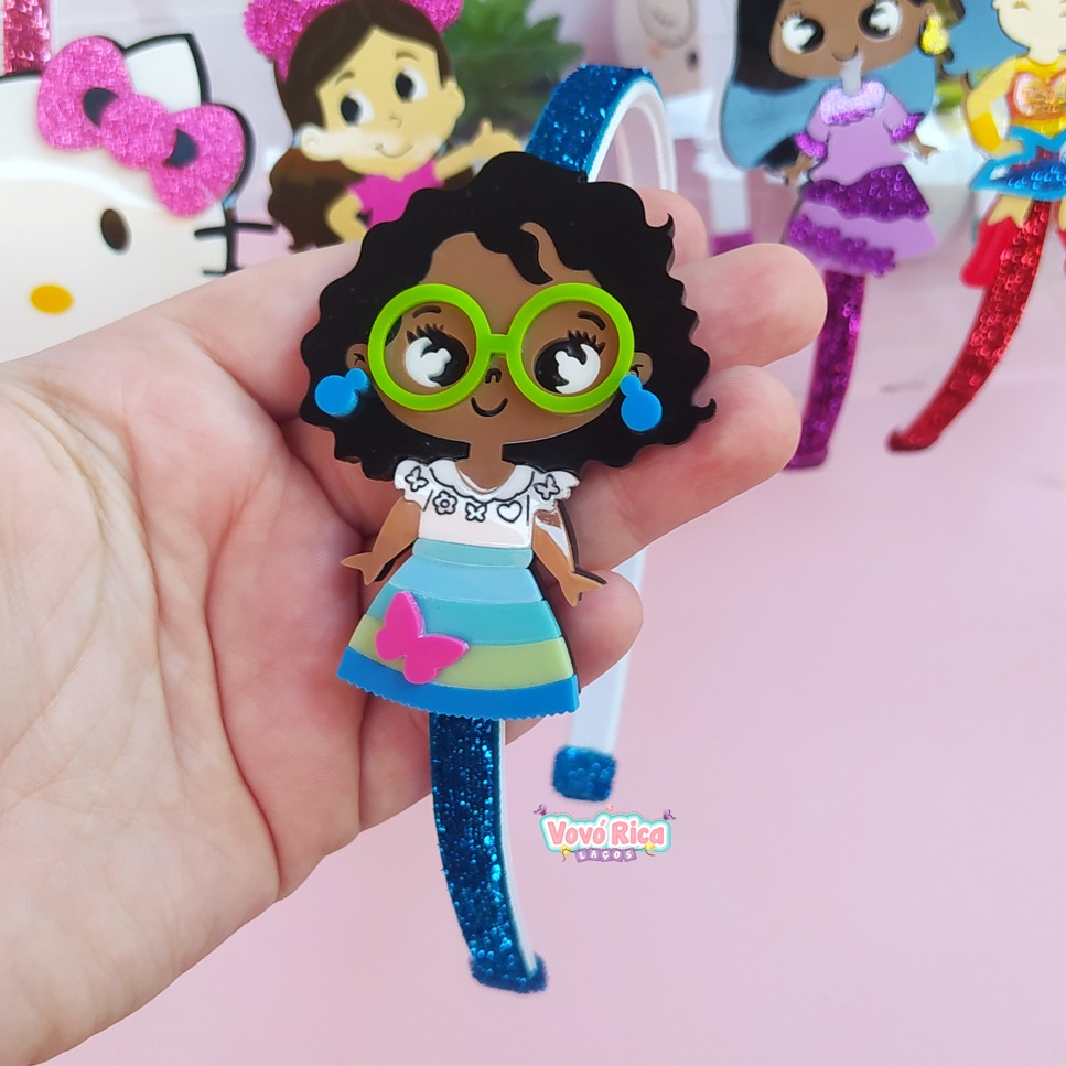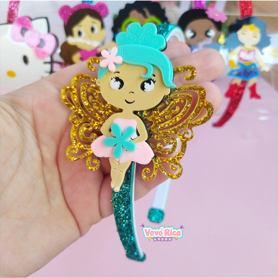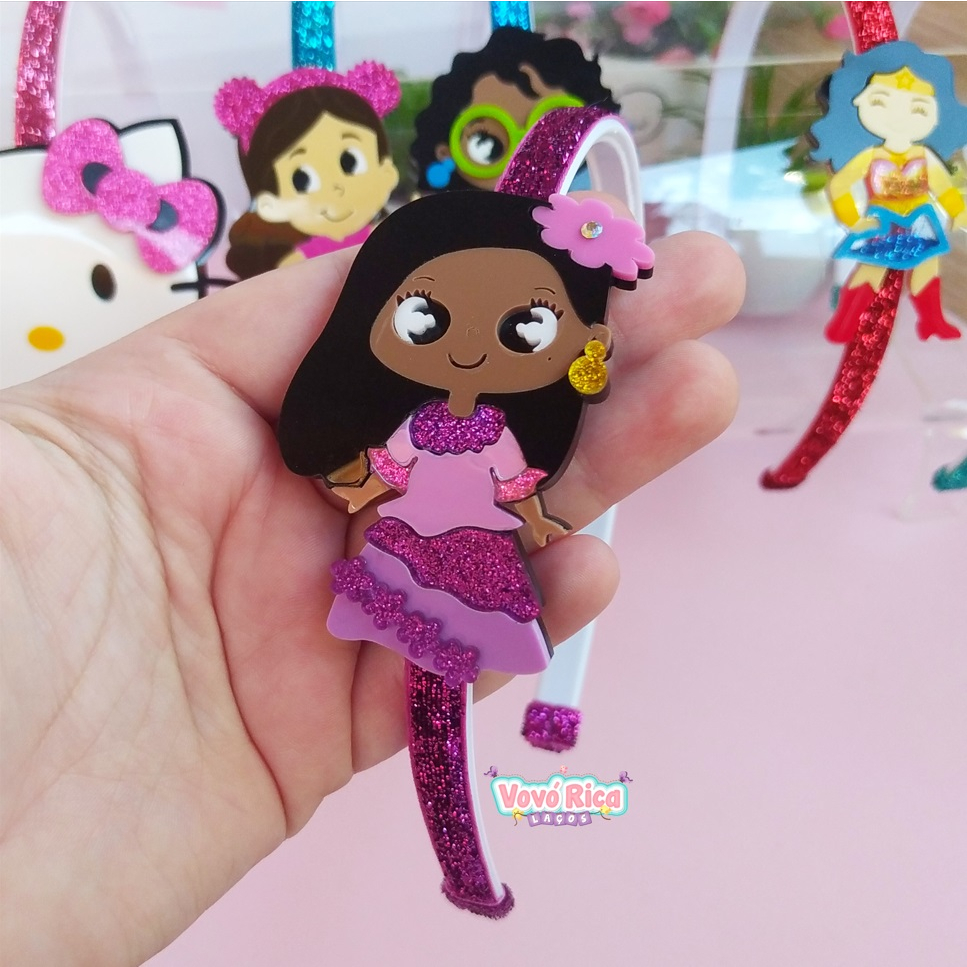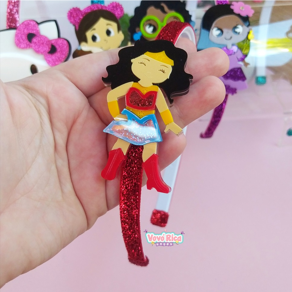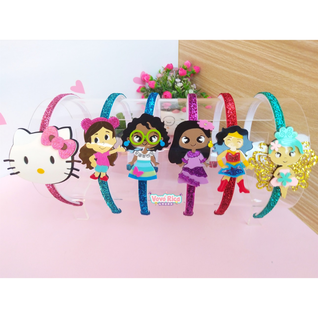 Tiara infantil com personagem Mulher Maravilha, Mirabel, Isabela, Encanto, Maria Clara, Hello Kitty, Fadinha com brilho