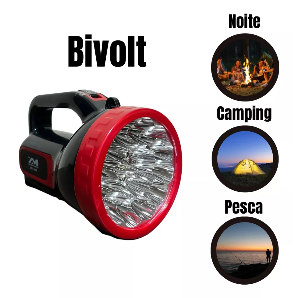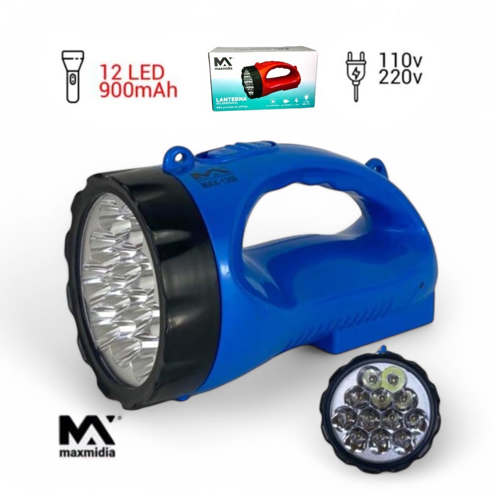 Lanterna Recarregável Maxmidia 19 Led Longo Alcance Bivolt 2 Estágios