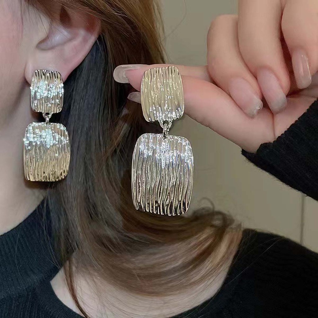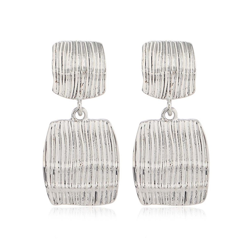 Brincos de Pressão Retangular Prateado Festas Luxo Mulheres