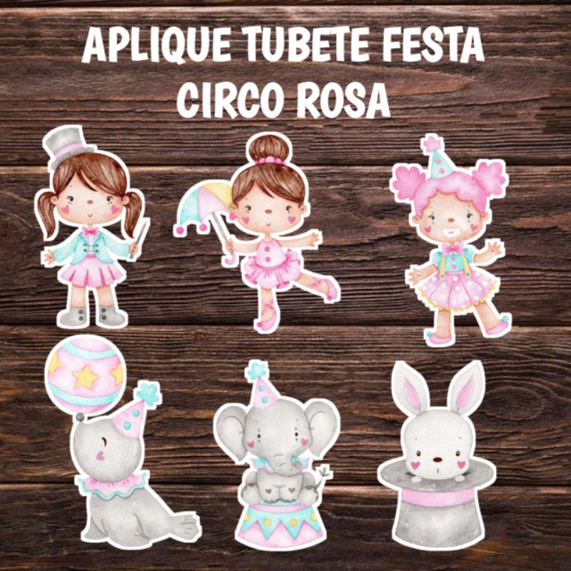 APLIQUE TUBETE FESTA CIRCO ROSA 50 unidades
