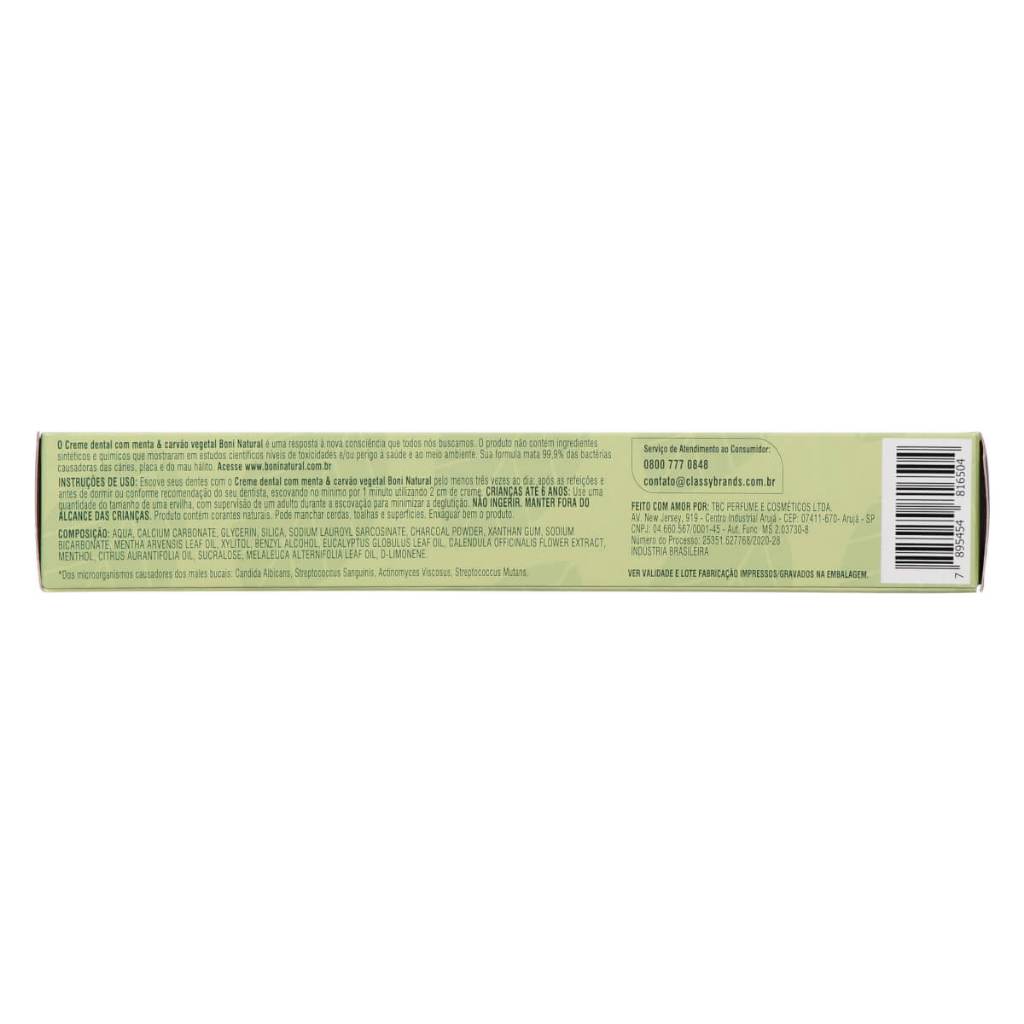 Pasta Dente Natural Vegana Boni Menta Carvao Vegetal