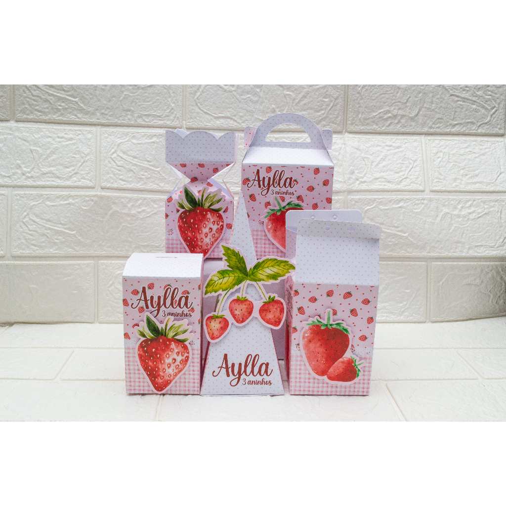 Kit Personalizados Morango Lembrancinhas Caixinhas para Festa De Aniversário