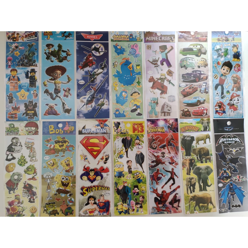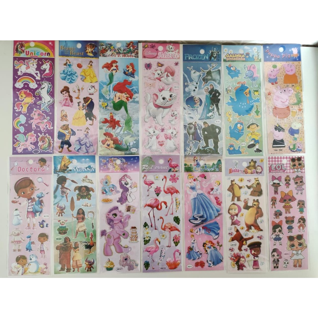 20 Cartelas Adesivos Stickers Infantis Personagens