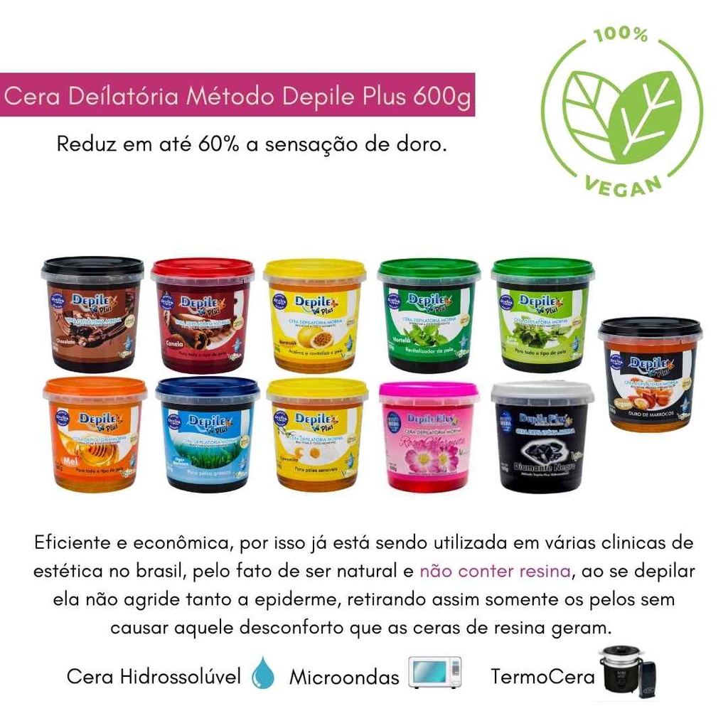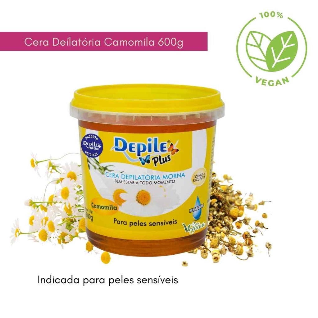 Cera Depilatória Camomila Hidrossolúvel Depile Plus 600g (Kit com 10) Indicada para peles sensíveis