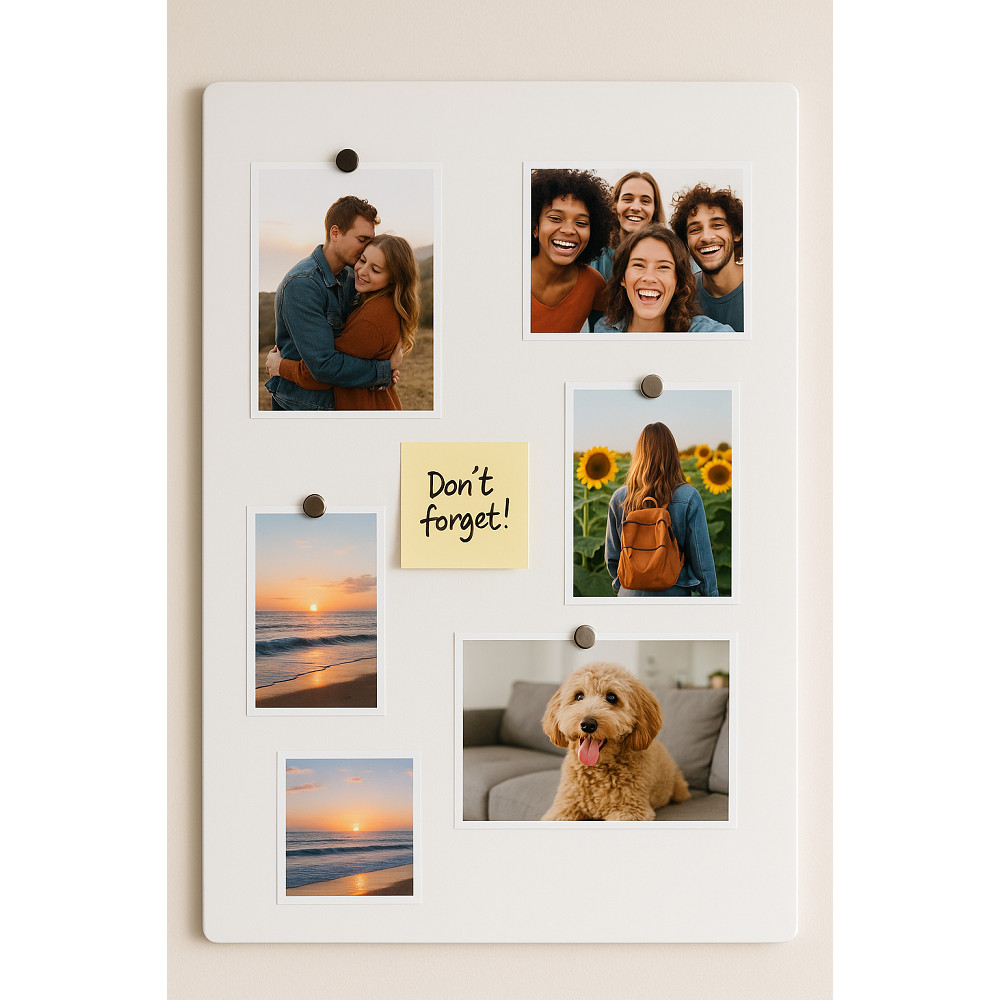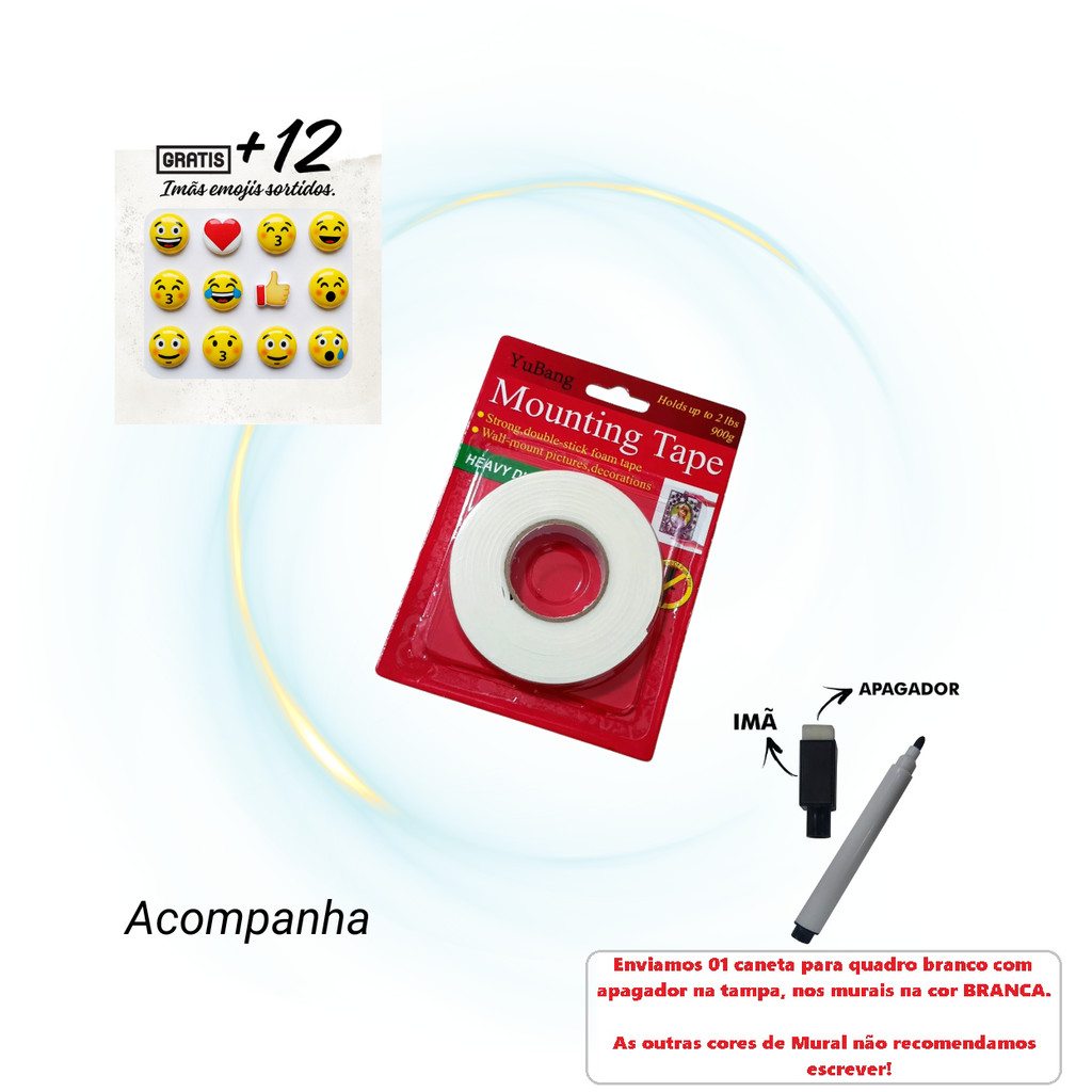 Painel Metálico 60X40cm BRANCO - SEM DOBRAS Mural Fotos e Recados +12 Imãs+Caneta+Fita Dupla Face
