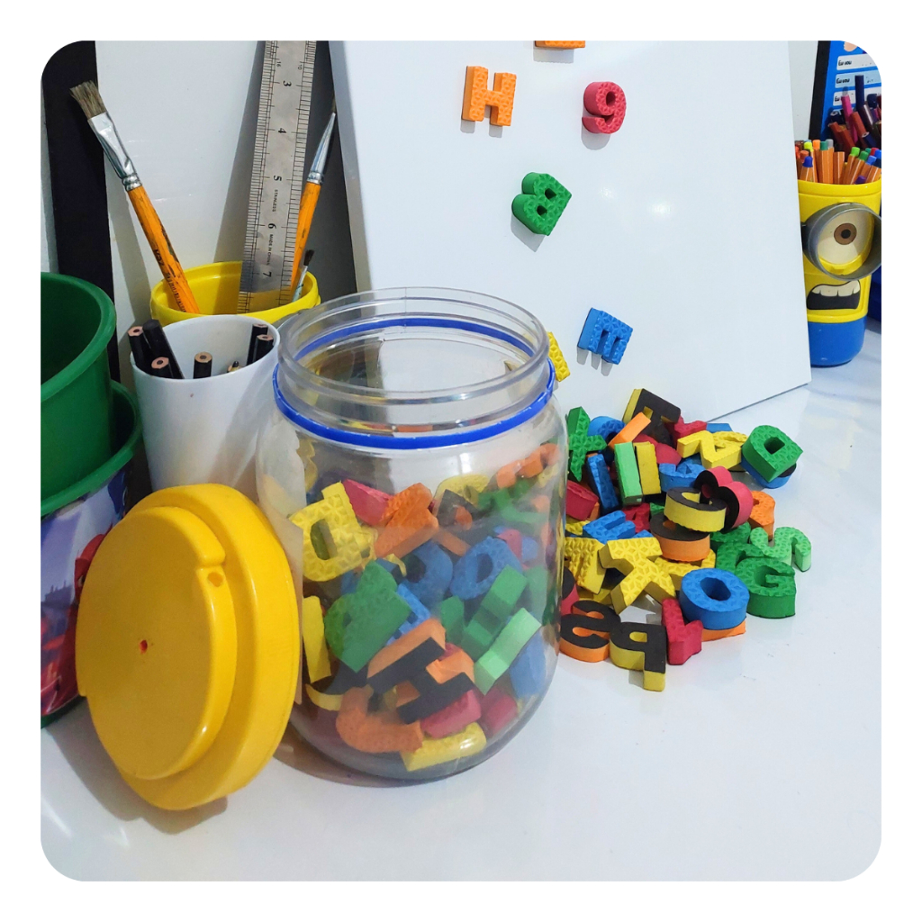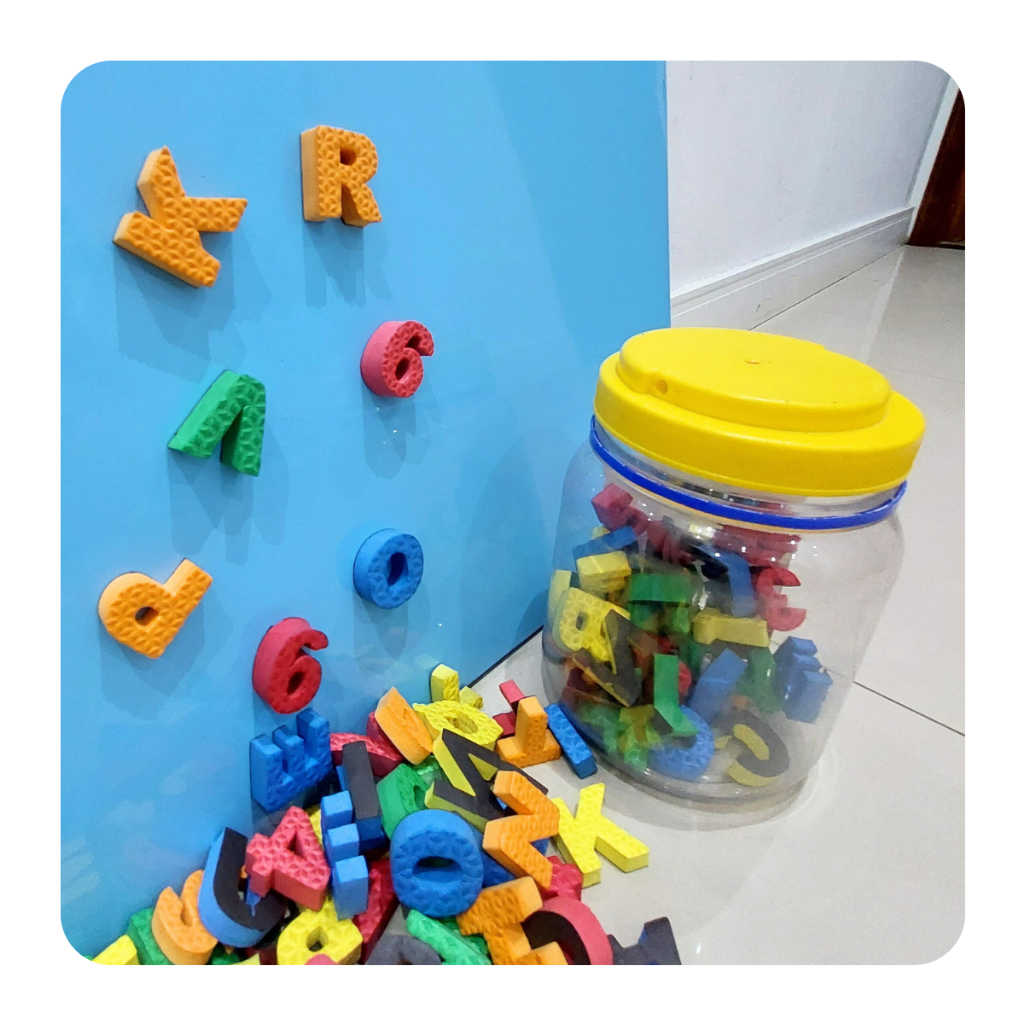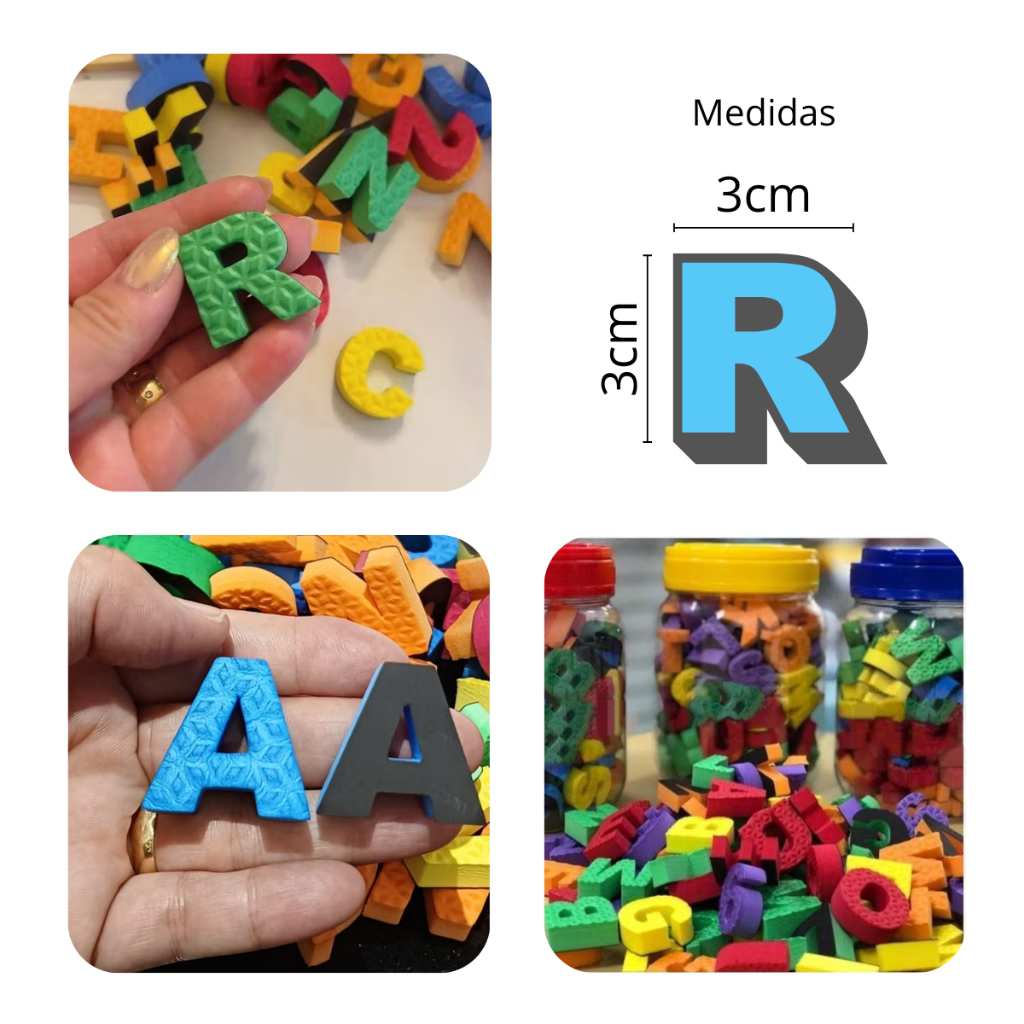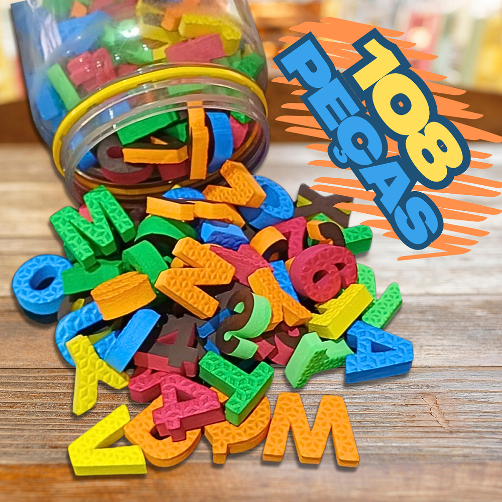 Pote De Letras E Números C/ Imã Magnéticas em EVA Aprendizado para Crianças Educativo - 108 Peças