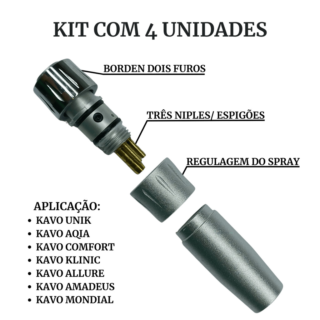 Kit 4 Terminal Triplo Borden Com Luva De Regulagem Kavo Unik Allure Aqia Klinic Amadeus Mondial