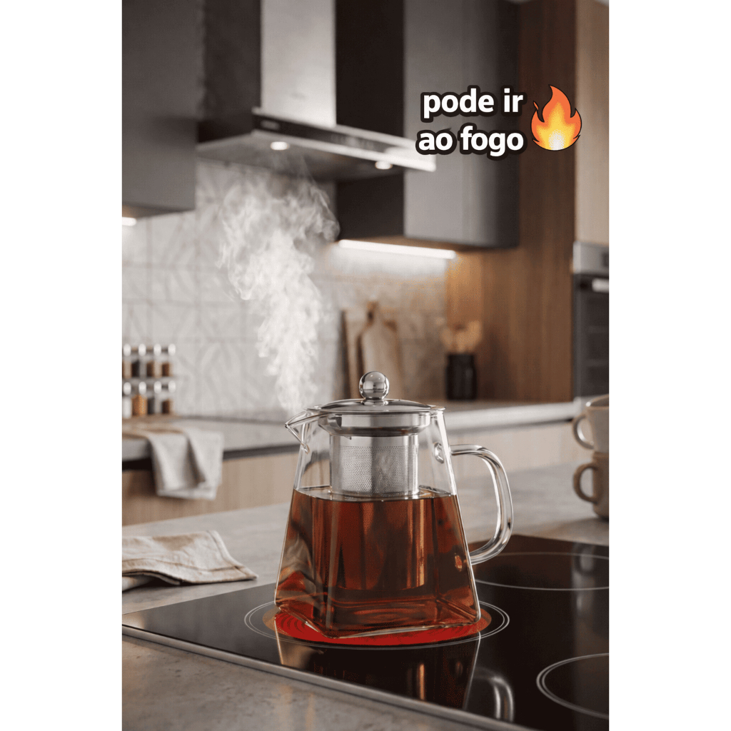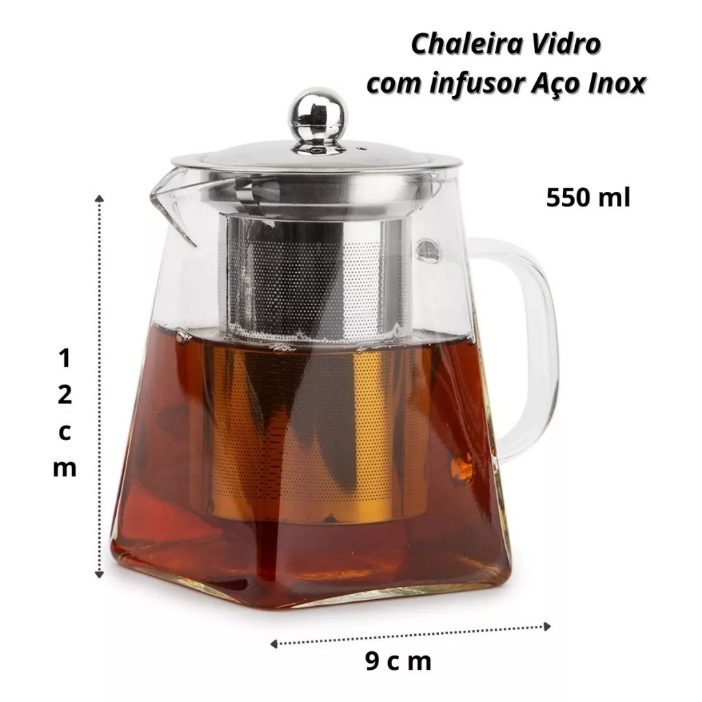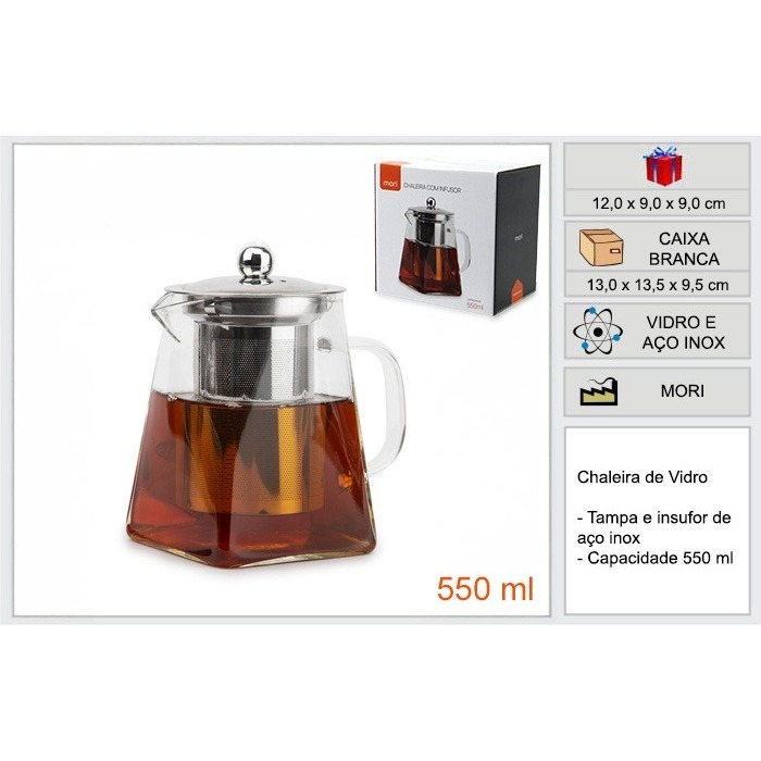 Chaleira com alça - Vidro Borossilicato direto ao fogo - Com Infusor Inox 550ml - Mori