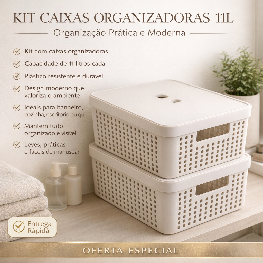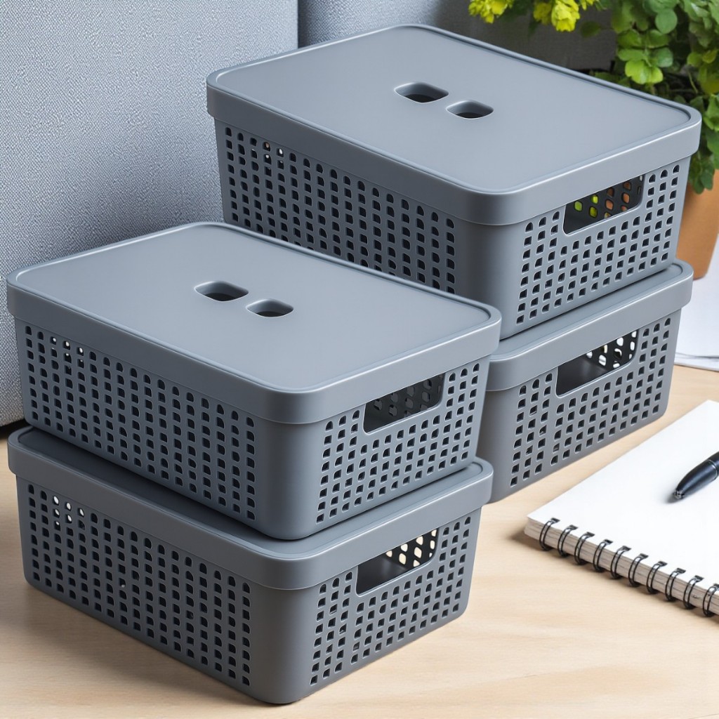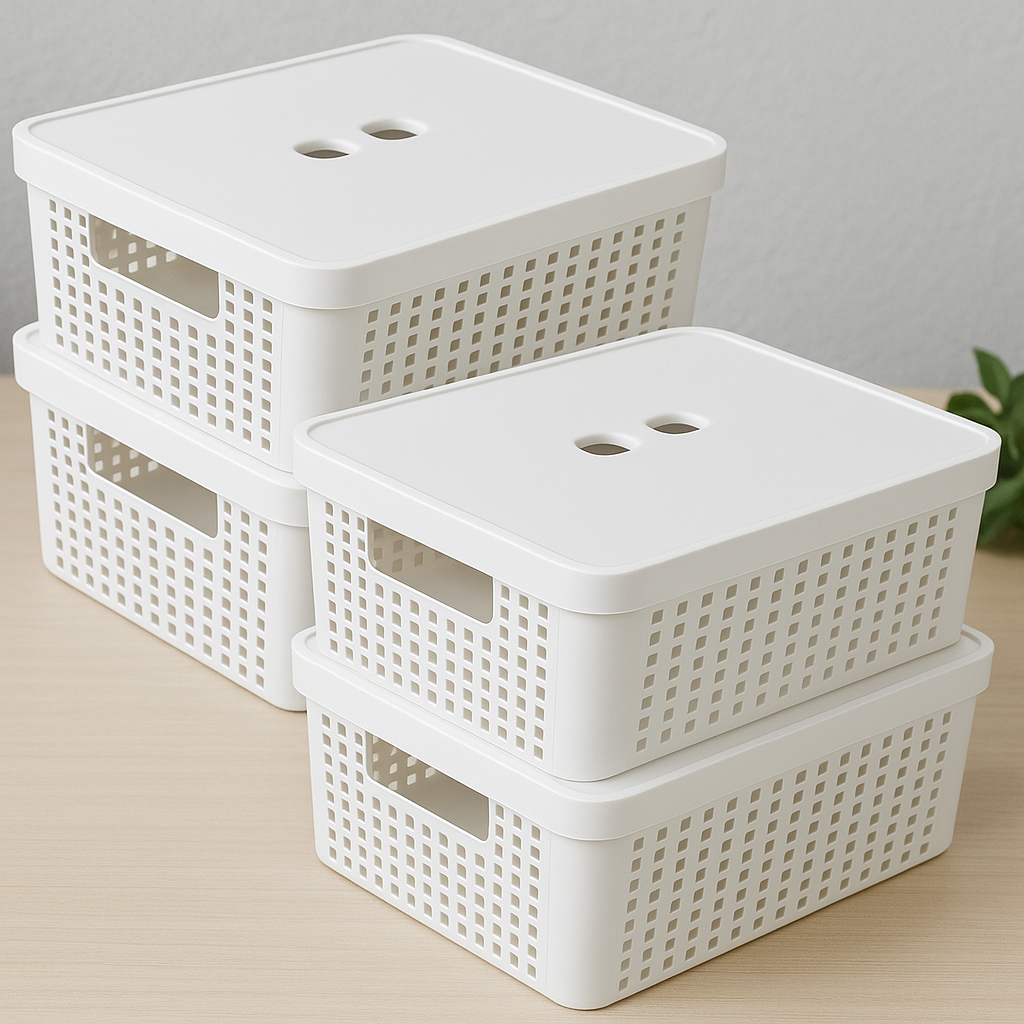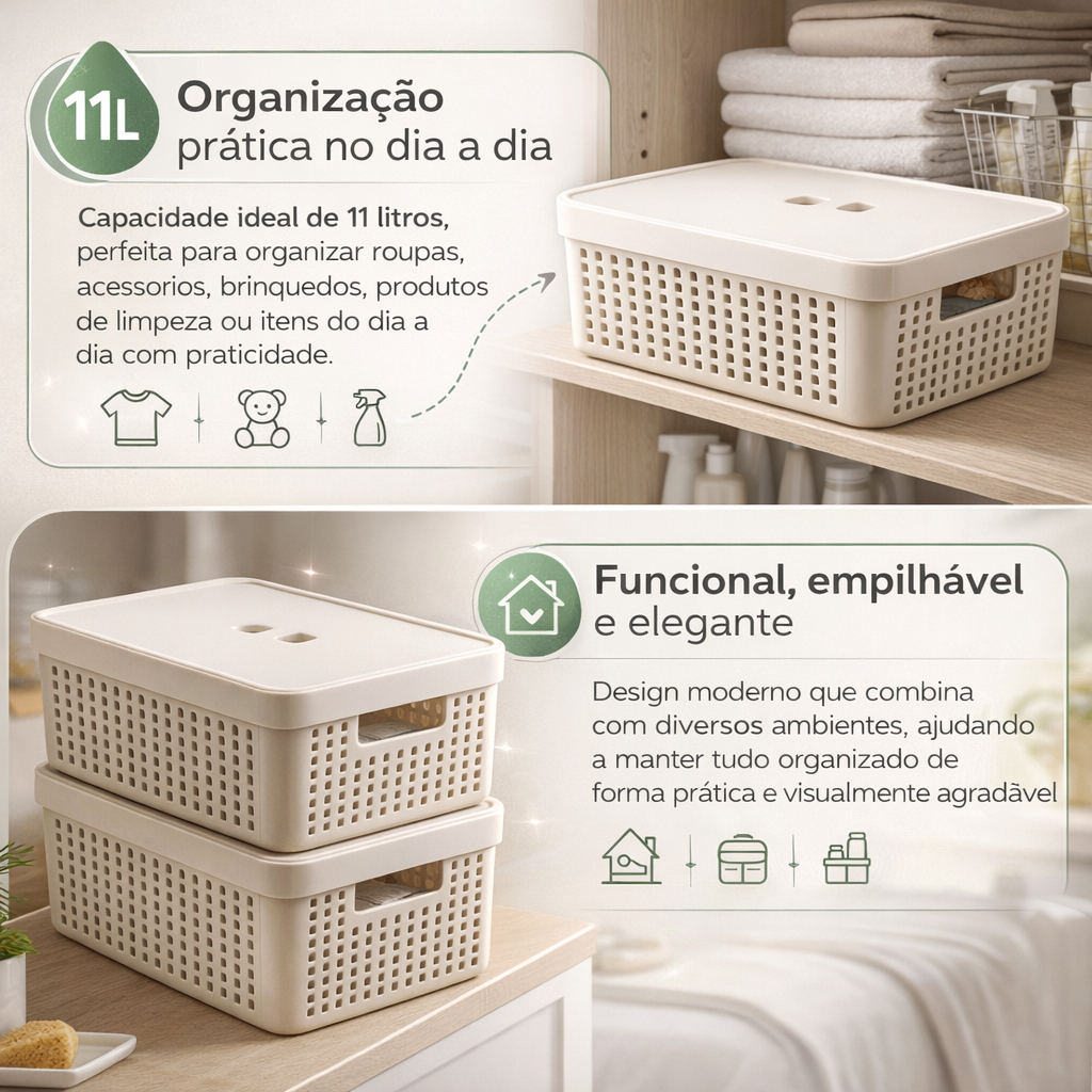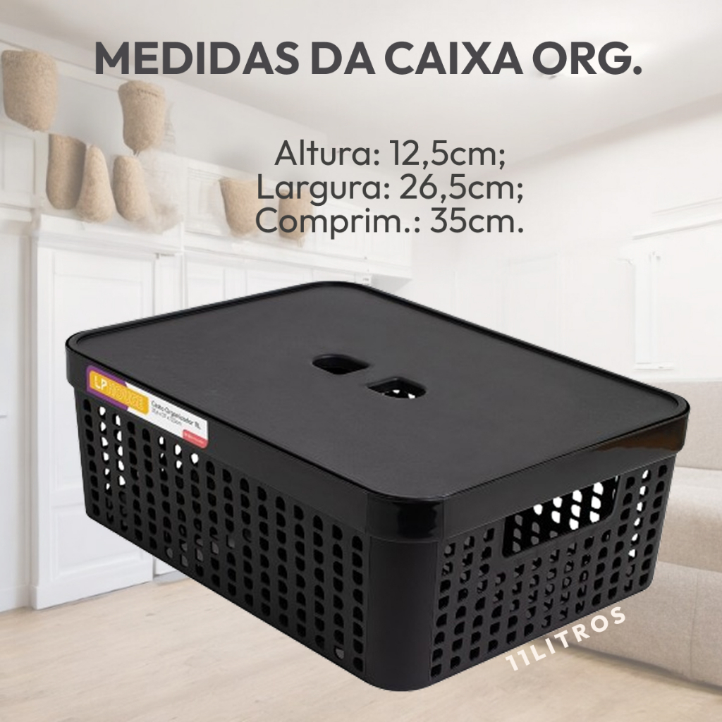 Kit 4 Caixa Organizadora com Tampa 11 Litros Cesto Grande em Plástico Resistente