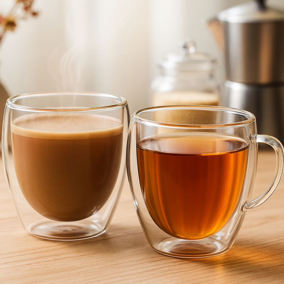 Xícara de Café Vidro com Alça 250 ML Parede Dupla Resistente Para Chá Cozinha