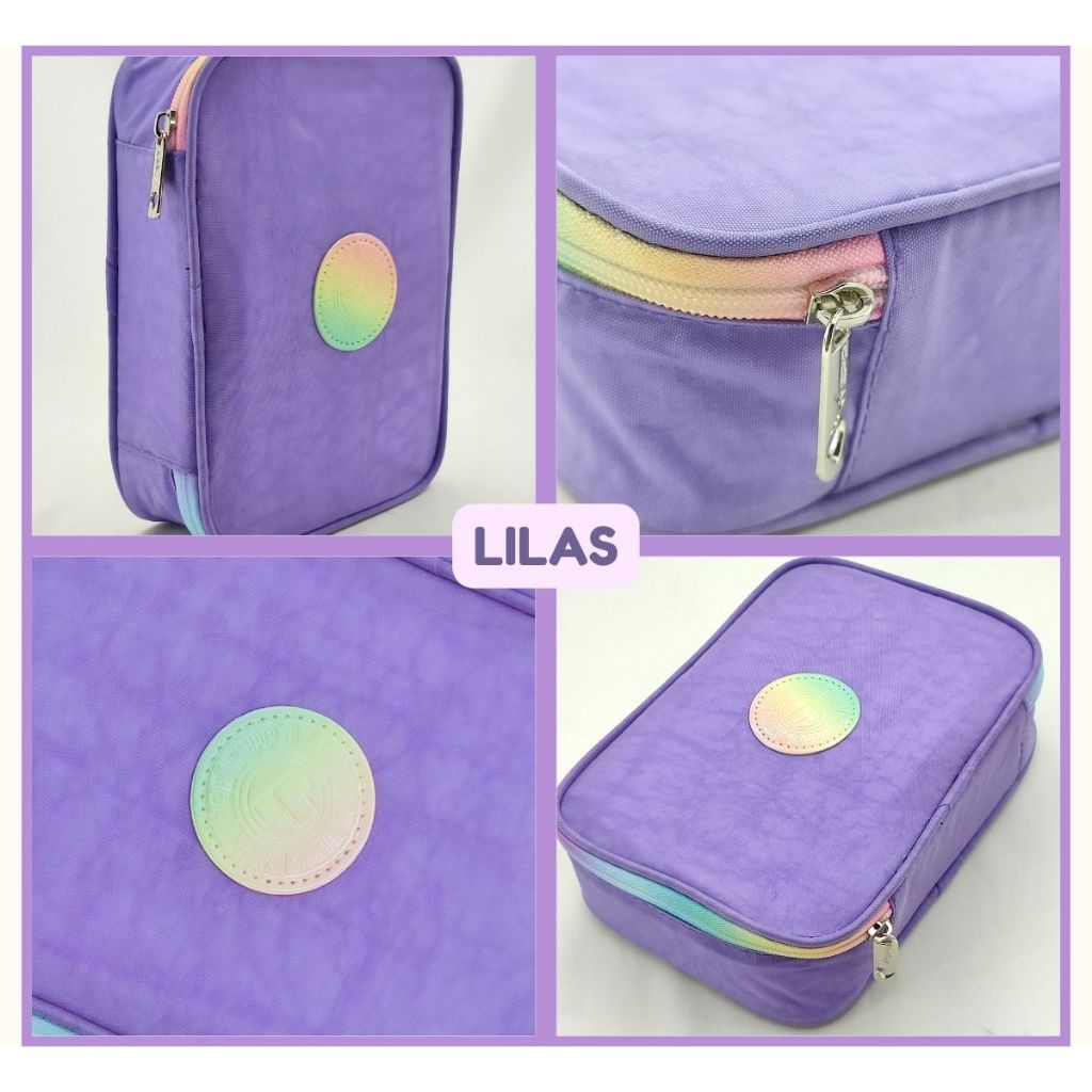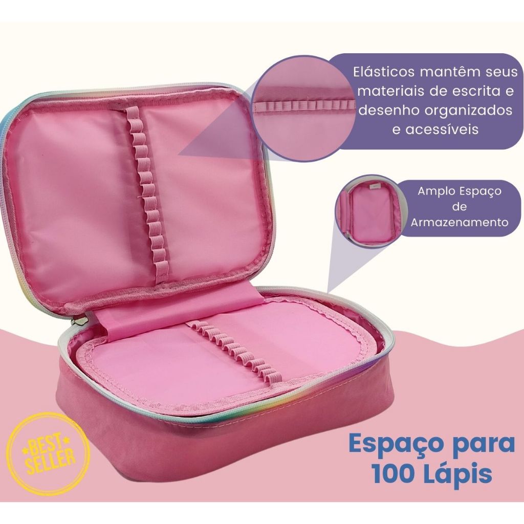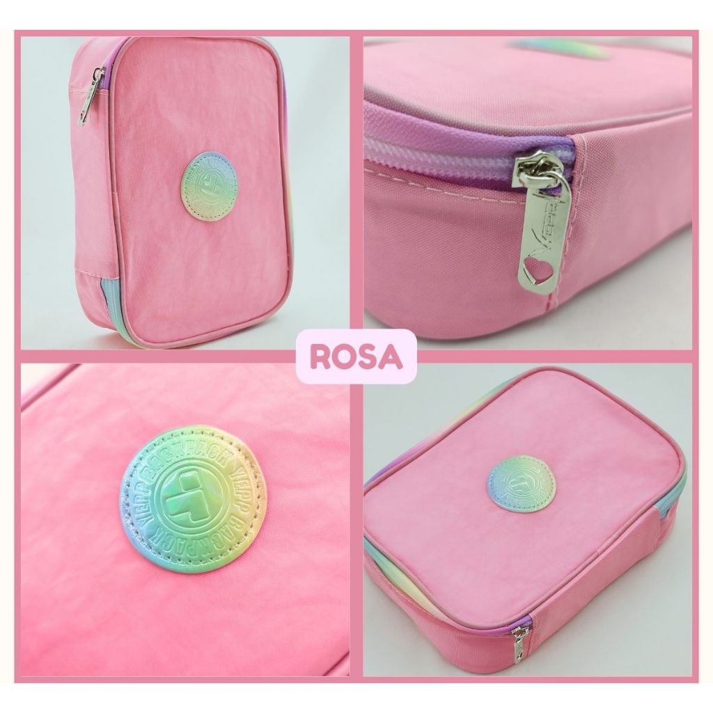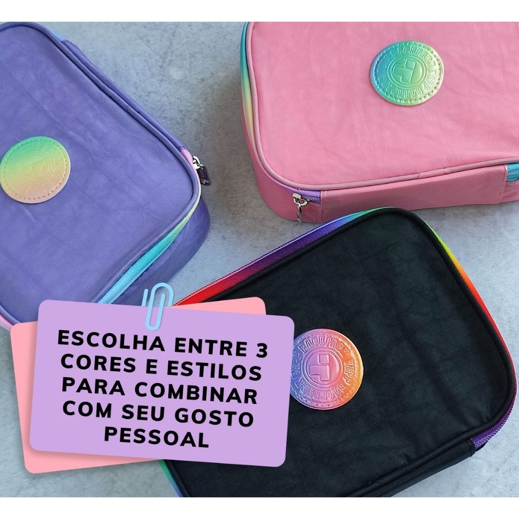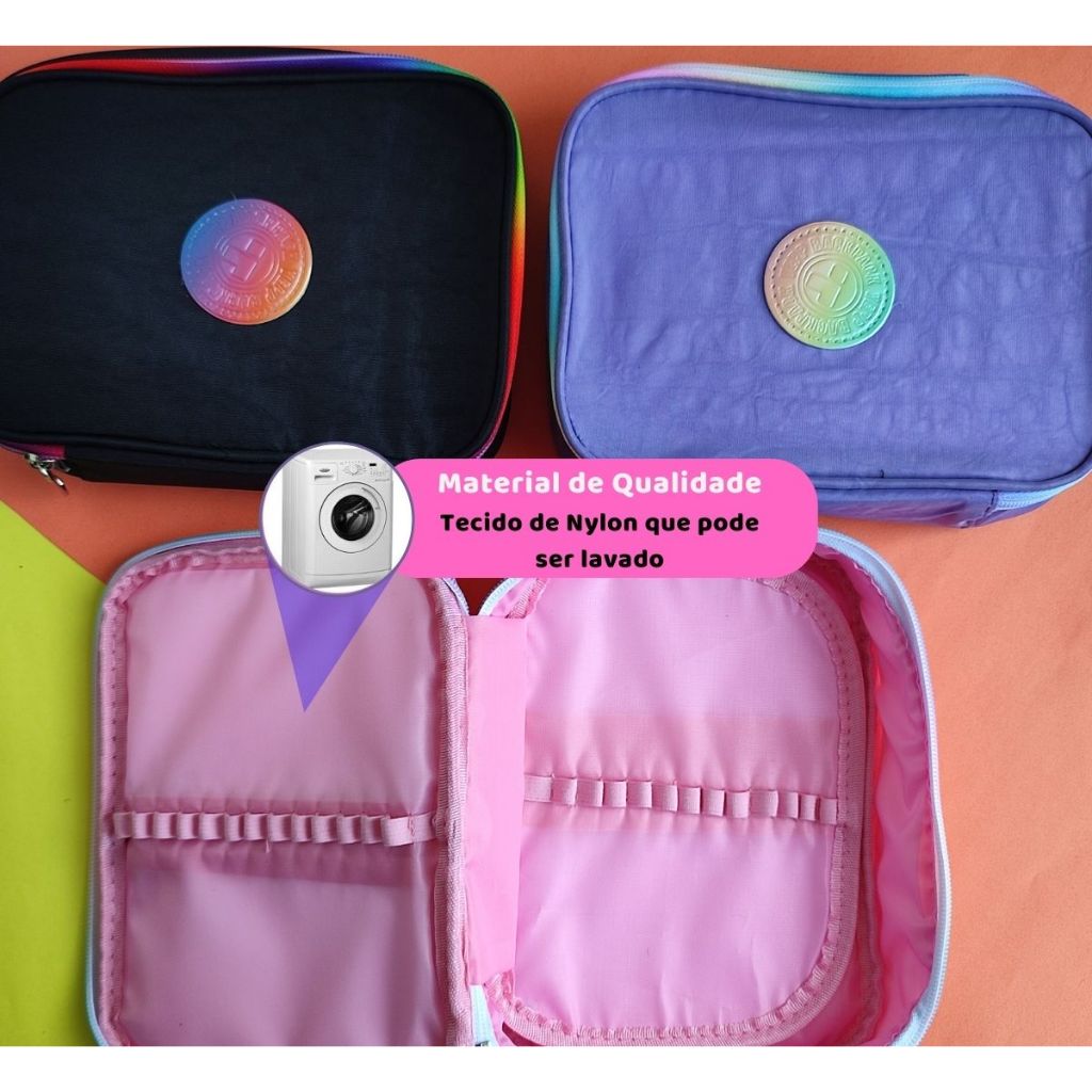 Estojo Box Escolar Organizador de Lápis Nylon Penal Tons Pasteis Grande