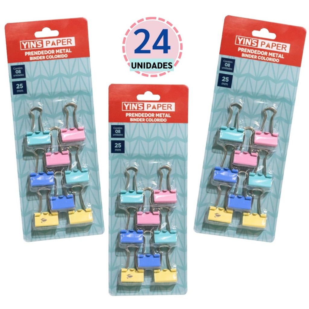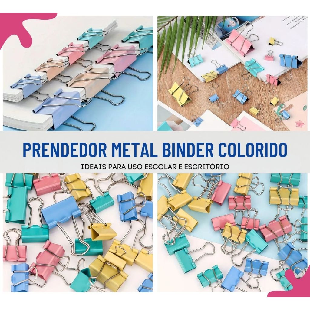 Kit de Prendedores de Papel Binder 25mm – Candy Color Pastel