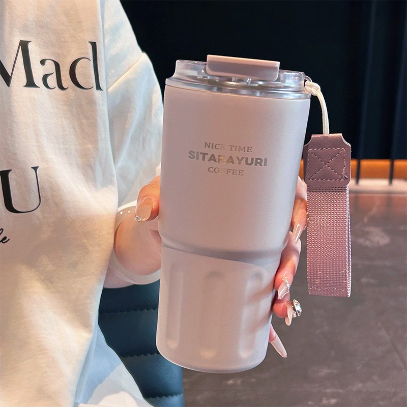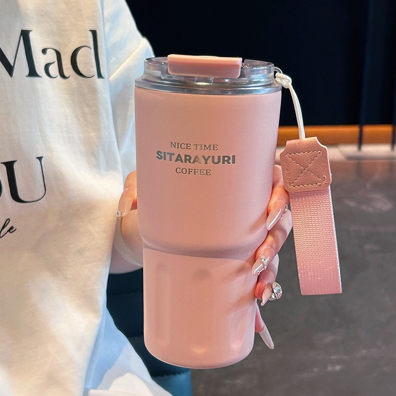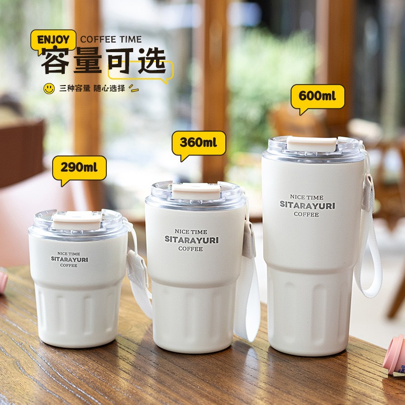Copo térmico de café a vácuo de aço inoxidável 290ml/360ml/600 com canudo e alça