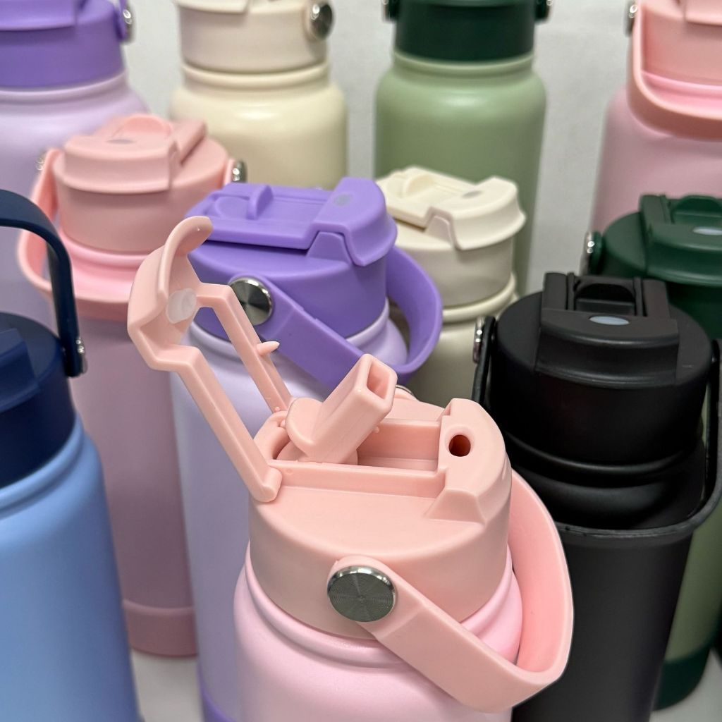 LANÇAMENTOGarrafa Térmica Inox1000/800/600ml Com Canudo Bico alça de transporte + BOTA DE SILICONE