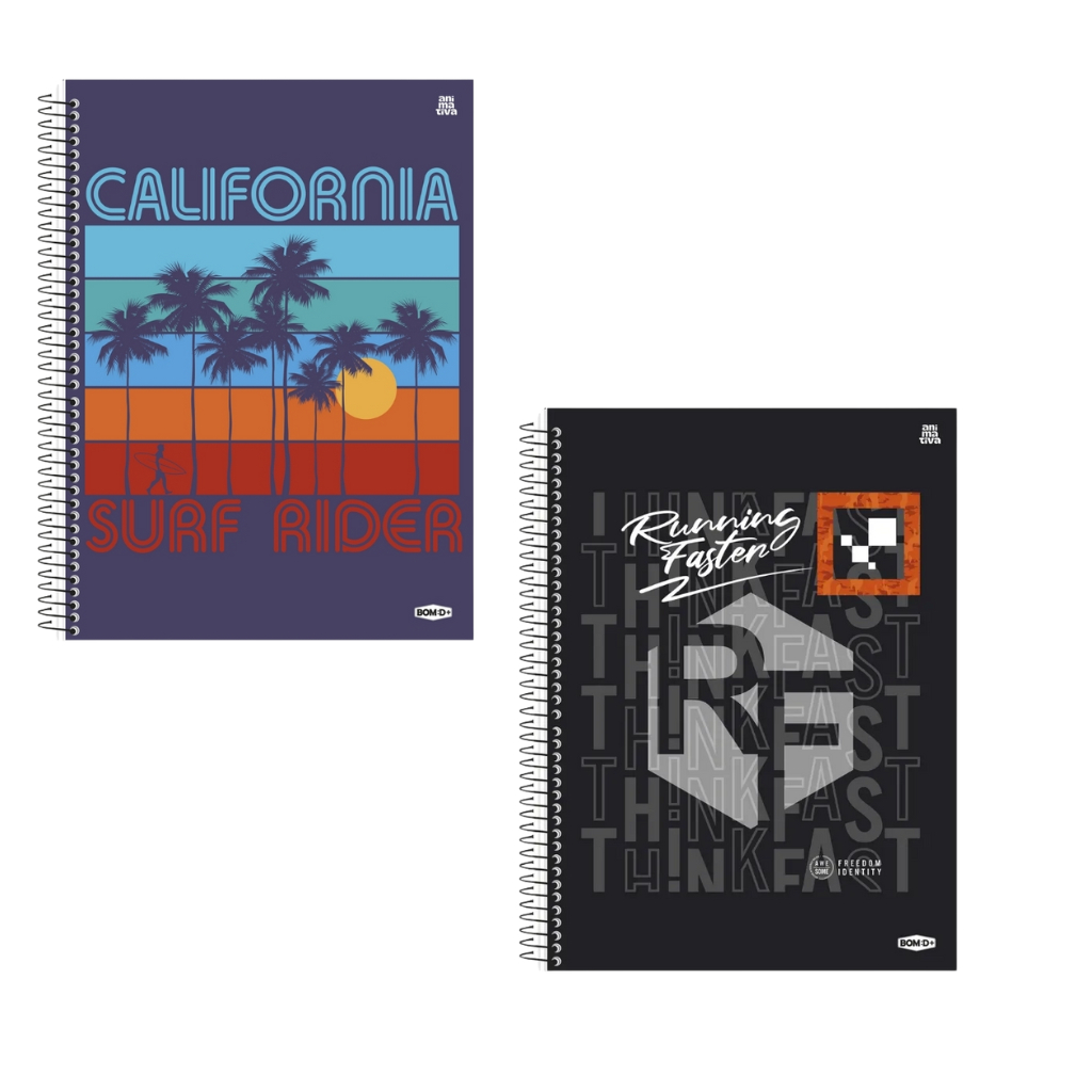 KIT 10 CADERNOS 1 Matéria SD Espiral Universitário Capa Dura 80 Folhas Masculino