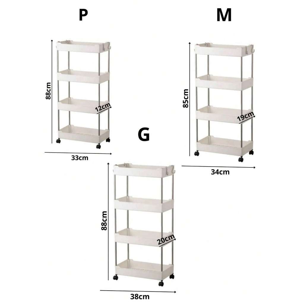 Armário Carrinho Organizador Multiuso Com 4 Camadas Com Rodinhas Cozinha Banheiro Quarto Lavanderia P, M, G ou Kit 3