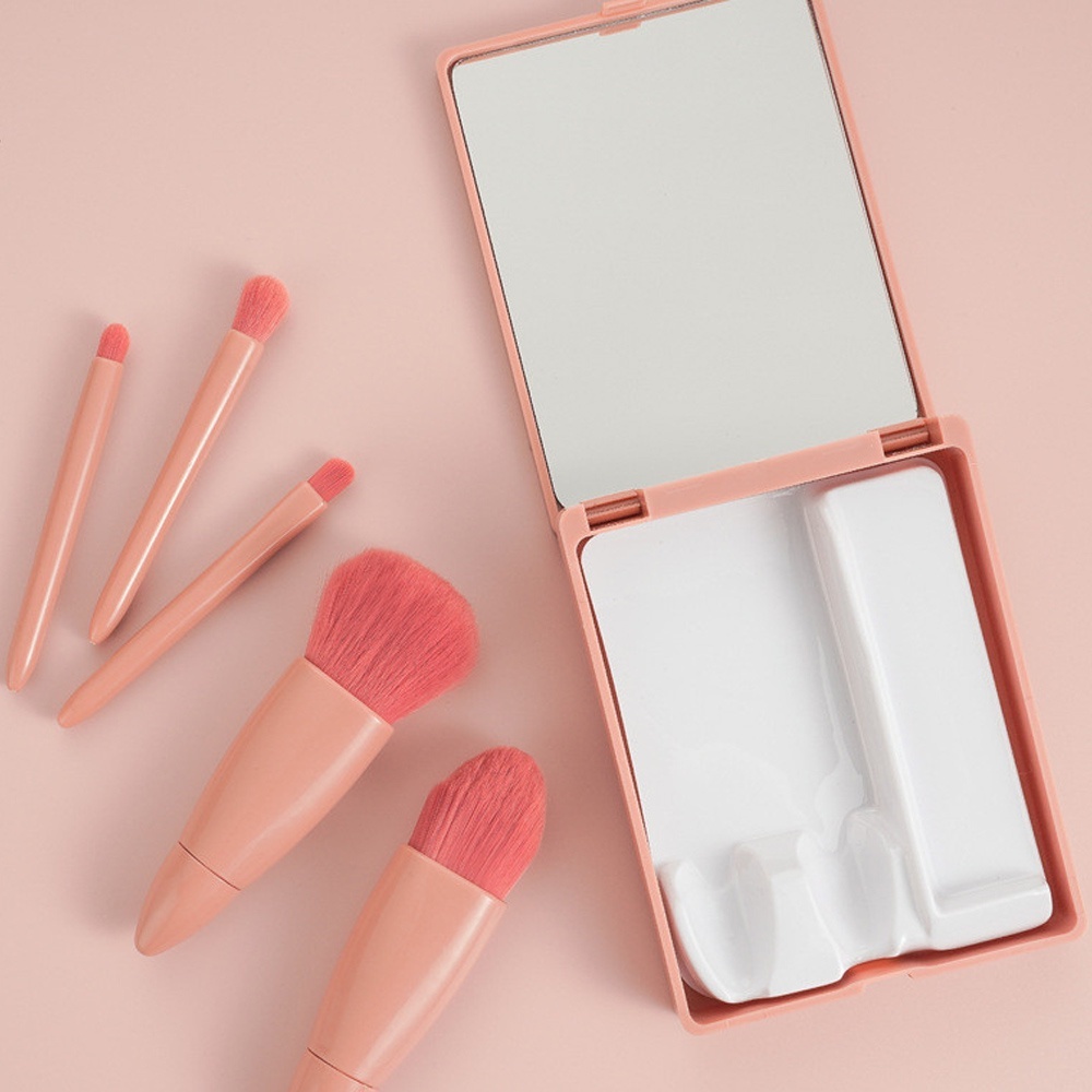 Kit Estojo com Espelho mais Três Esponjas kit de Maquiagem, base, Pó, Blush, Contorno 4 Pinceis