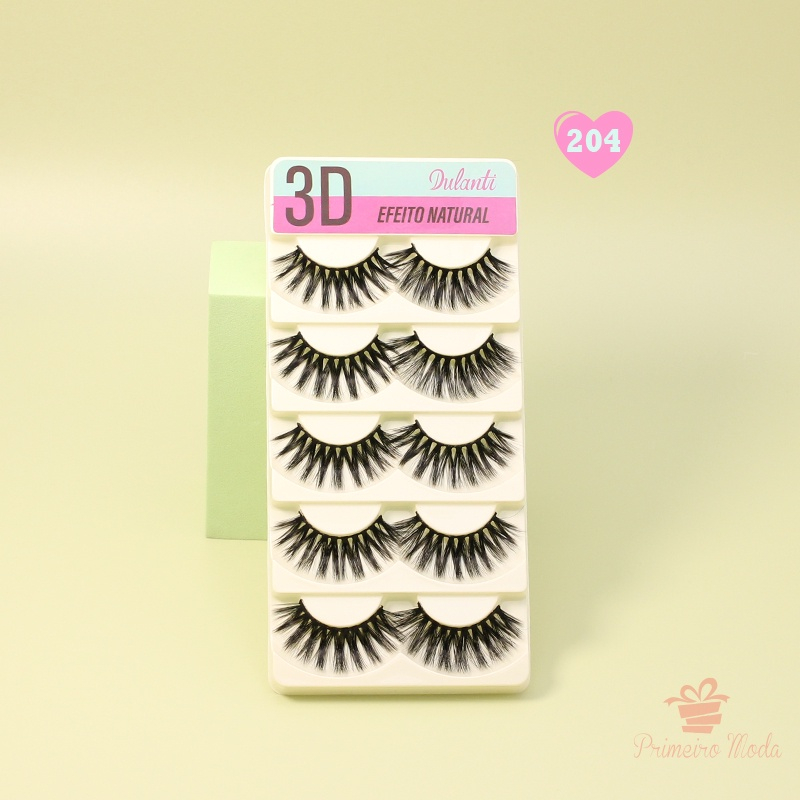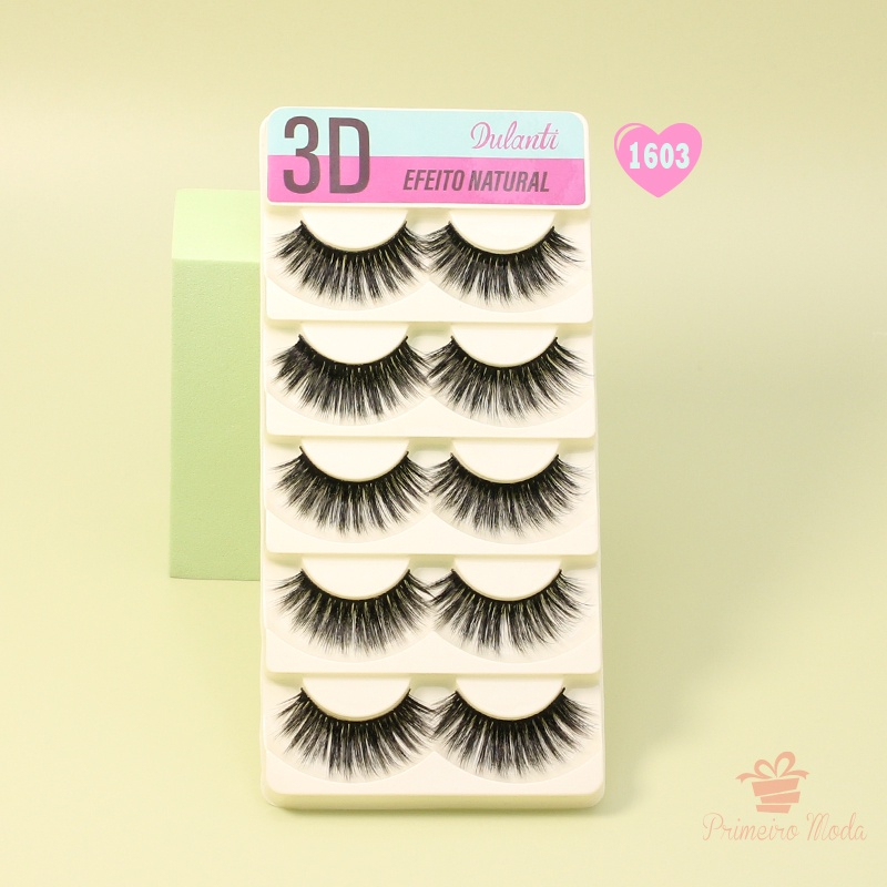 Cílios Postiços 5 pares + Cola Macrilan A prova D'Agua Preta ou Branca Kit