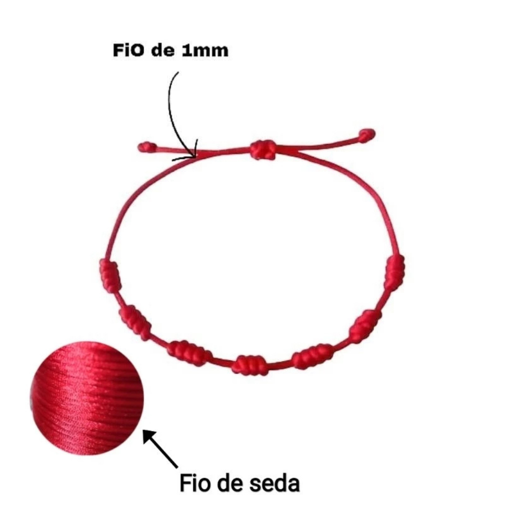 Kit Pulseira Vermelha 7 Nós Adulto de Seda, Combinação 2 Unidades
