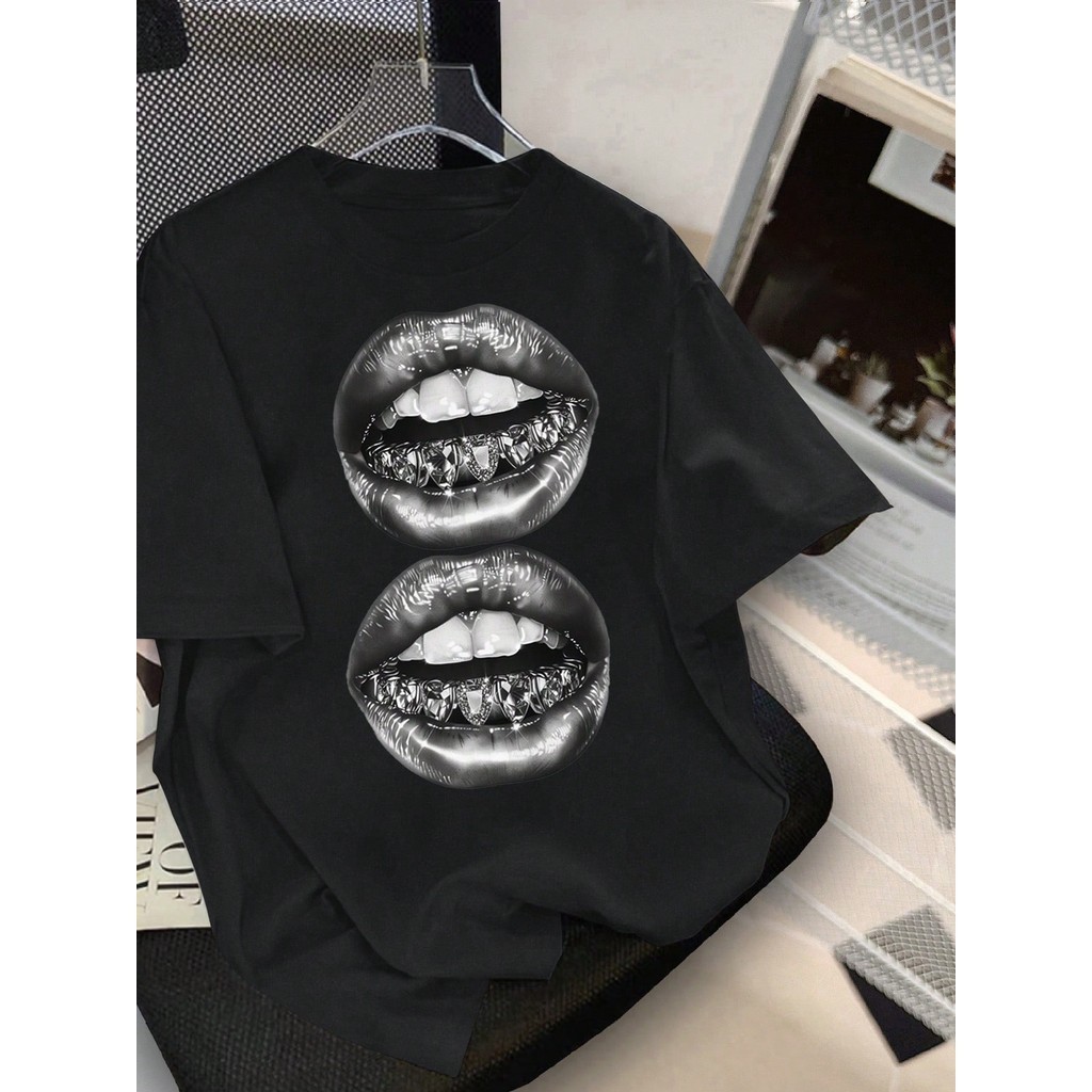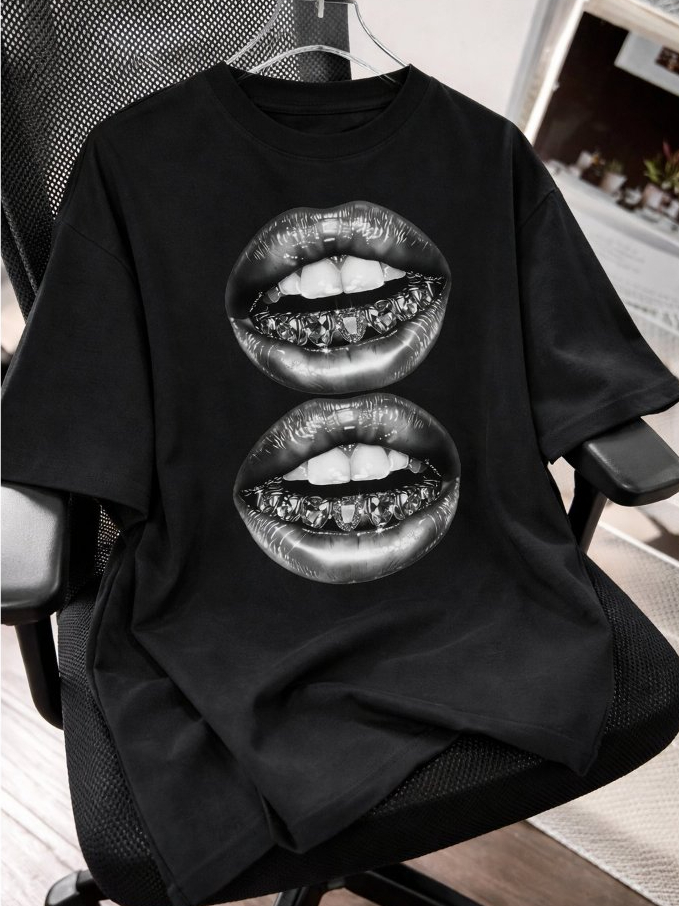 Camiseta Oversized Estampa Lábios Feminina | Algodão Confortável Fashion