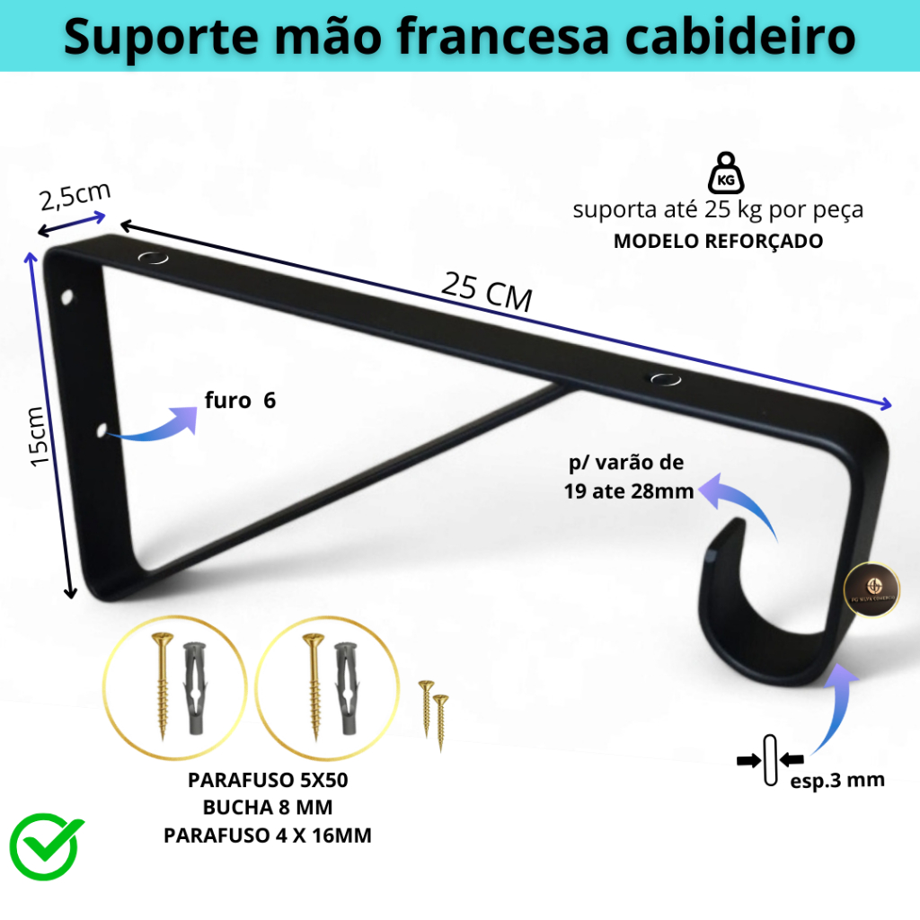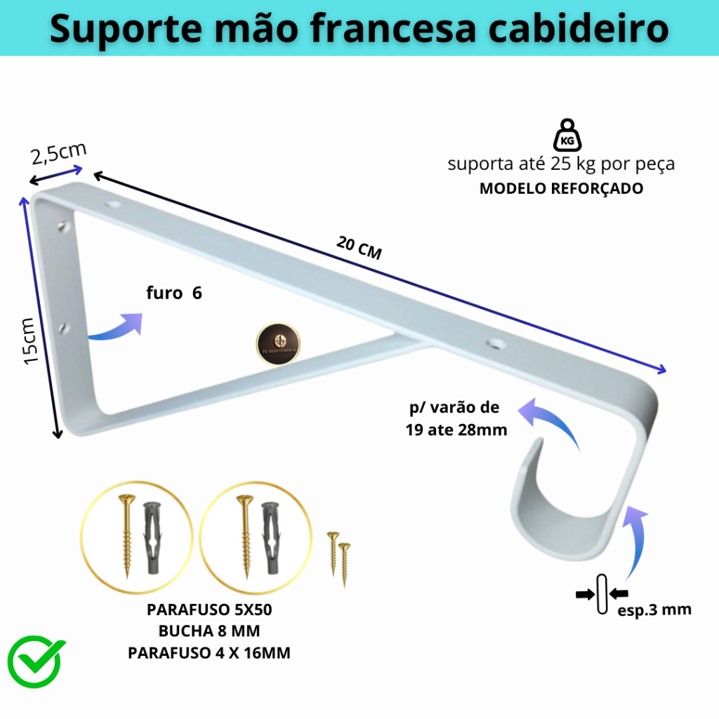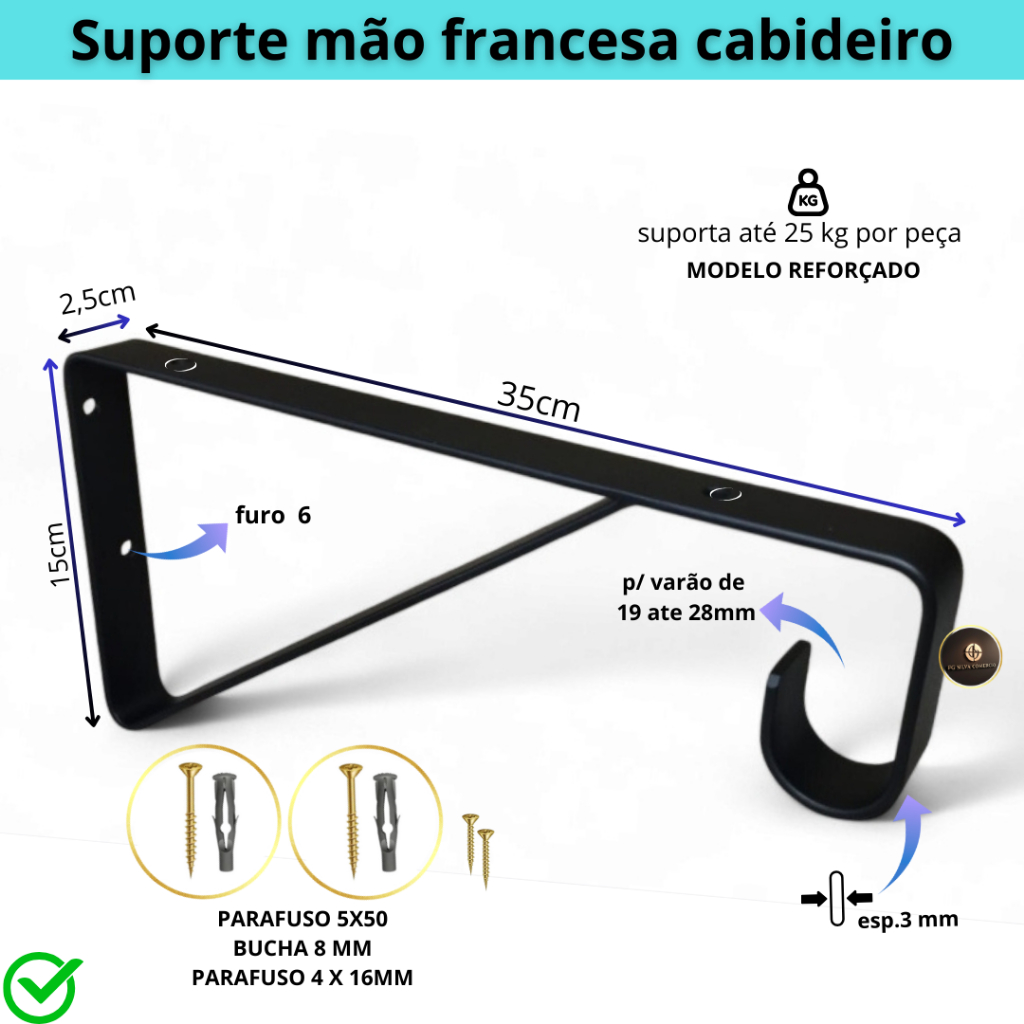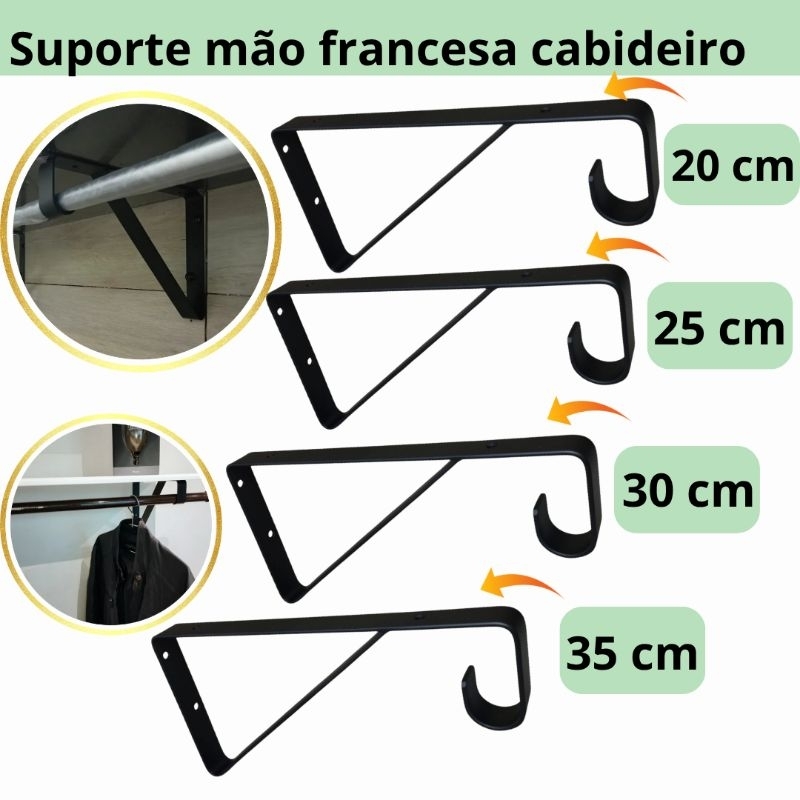 Mão Francesa 4 un reforçada de 20 a 35 cm com Suporte Para Cabideiro