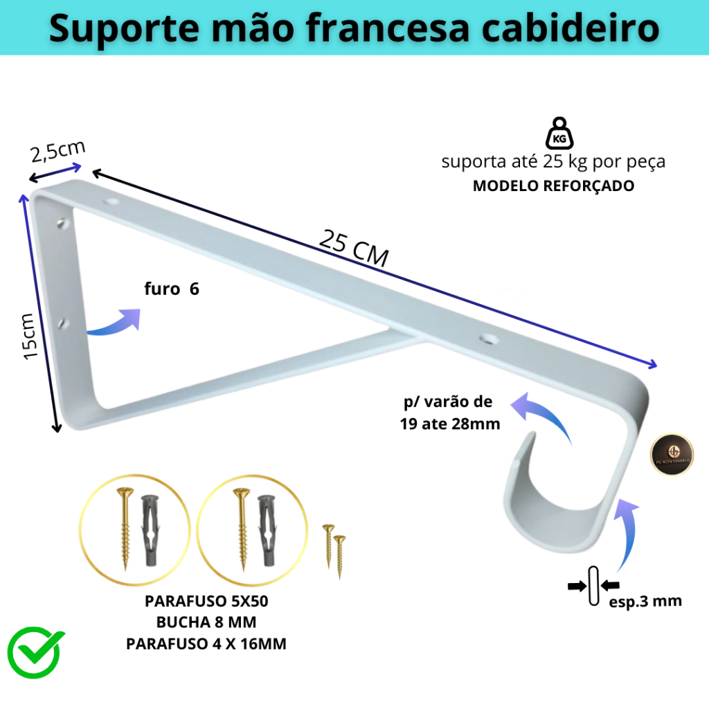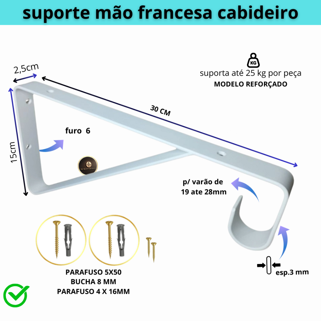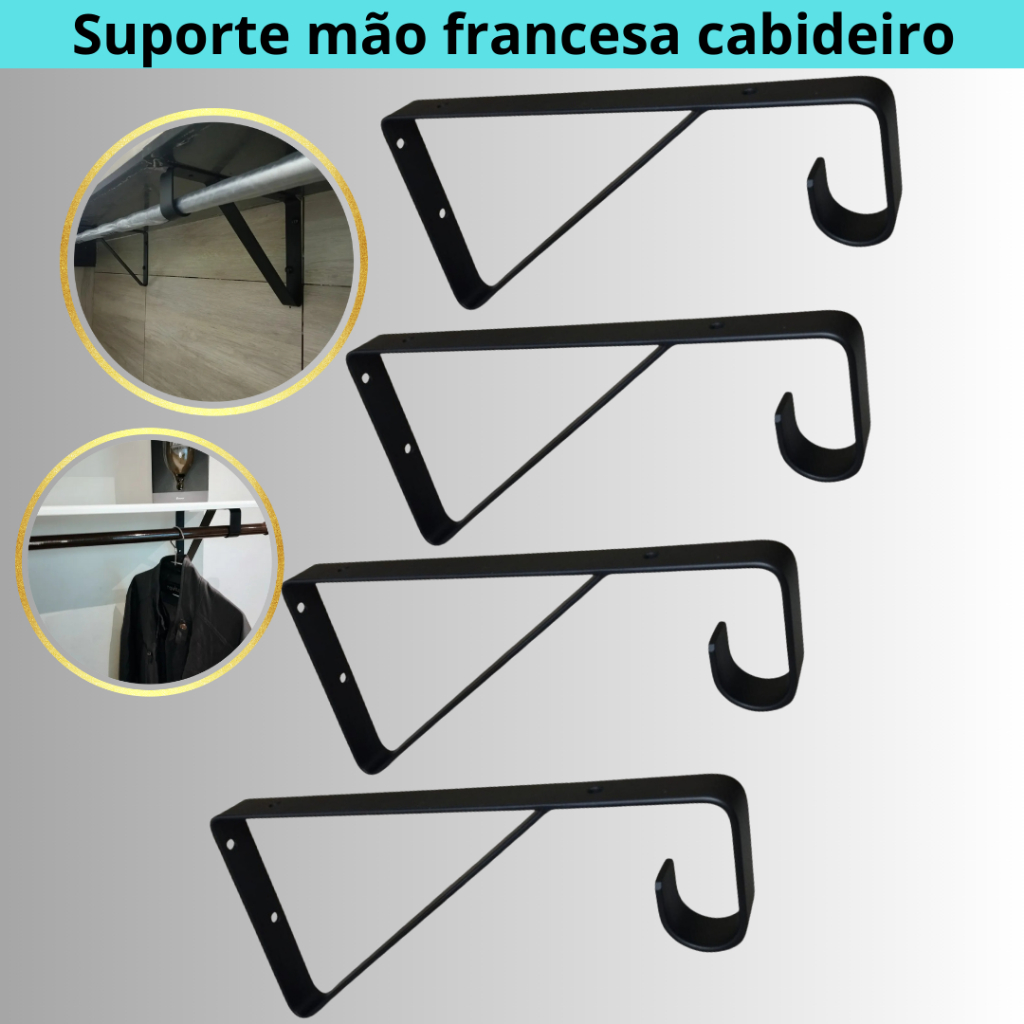 kit 4 Mão Francesa Reforçada parafusos buchas Suporte metal Cabideiro