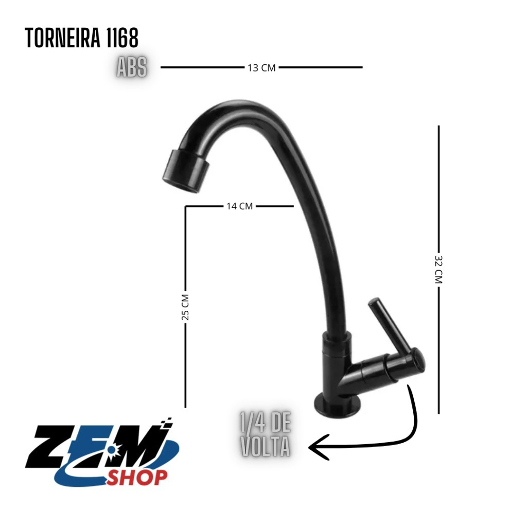 Torneira Bica Móvel Cozinha Preta 1/4 Volta-Makeupnails
