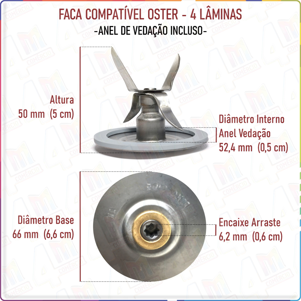 Lâmina Faca Inox Compatível Liquidificador Oster De 4 Pontas