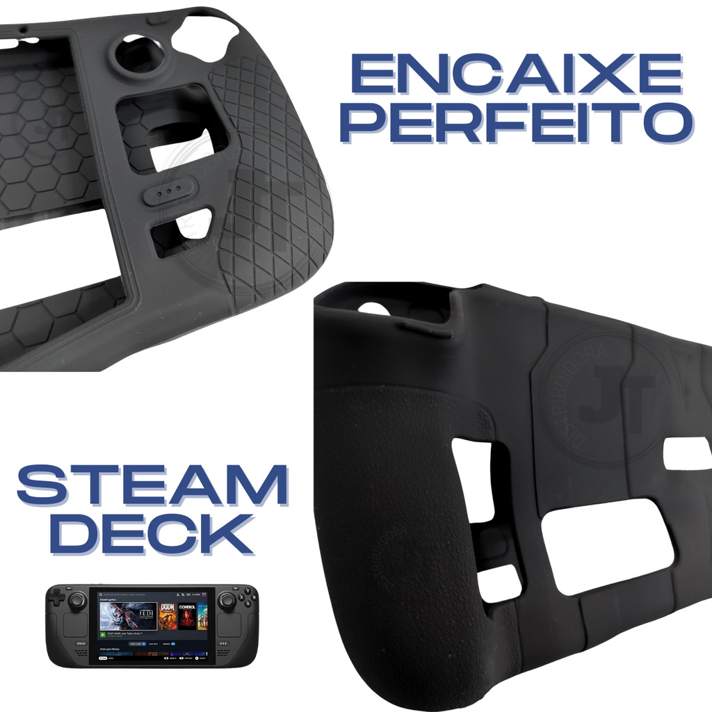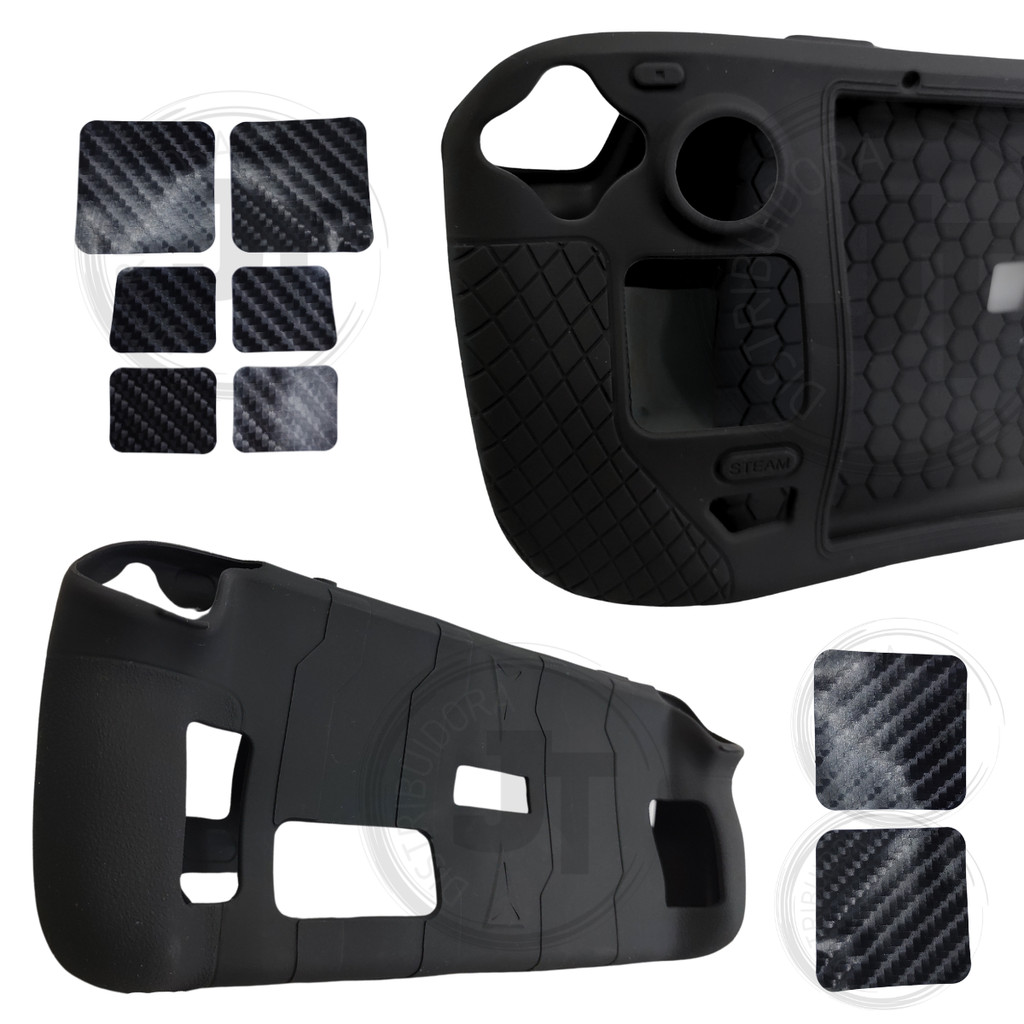 Kit Para Steam Deck Capa Case Protetora + 14 Acessórios Grip Silicone Console Botão Analógico Preto