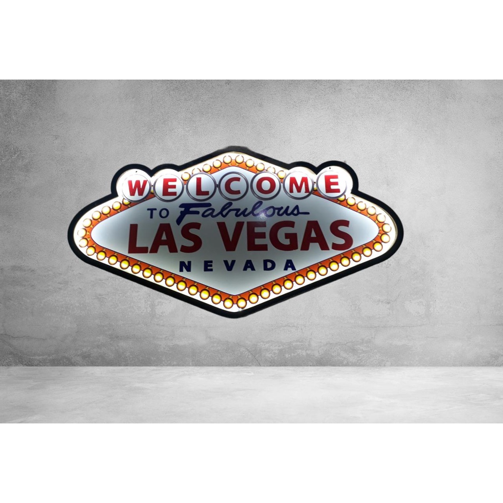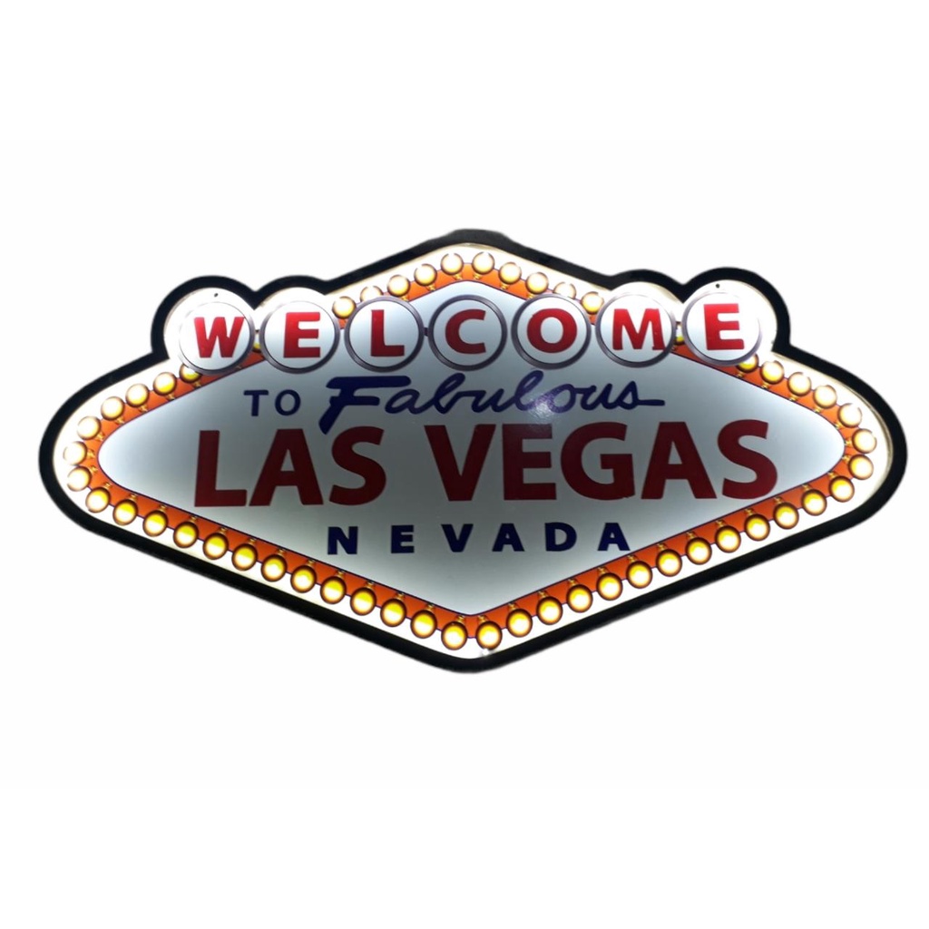 Placa Led Painel Luminoso Las Vegas Vintage Decoração Poker