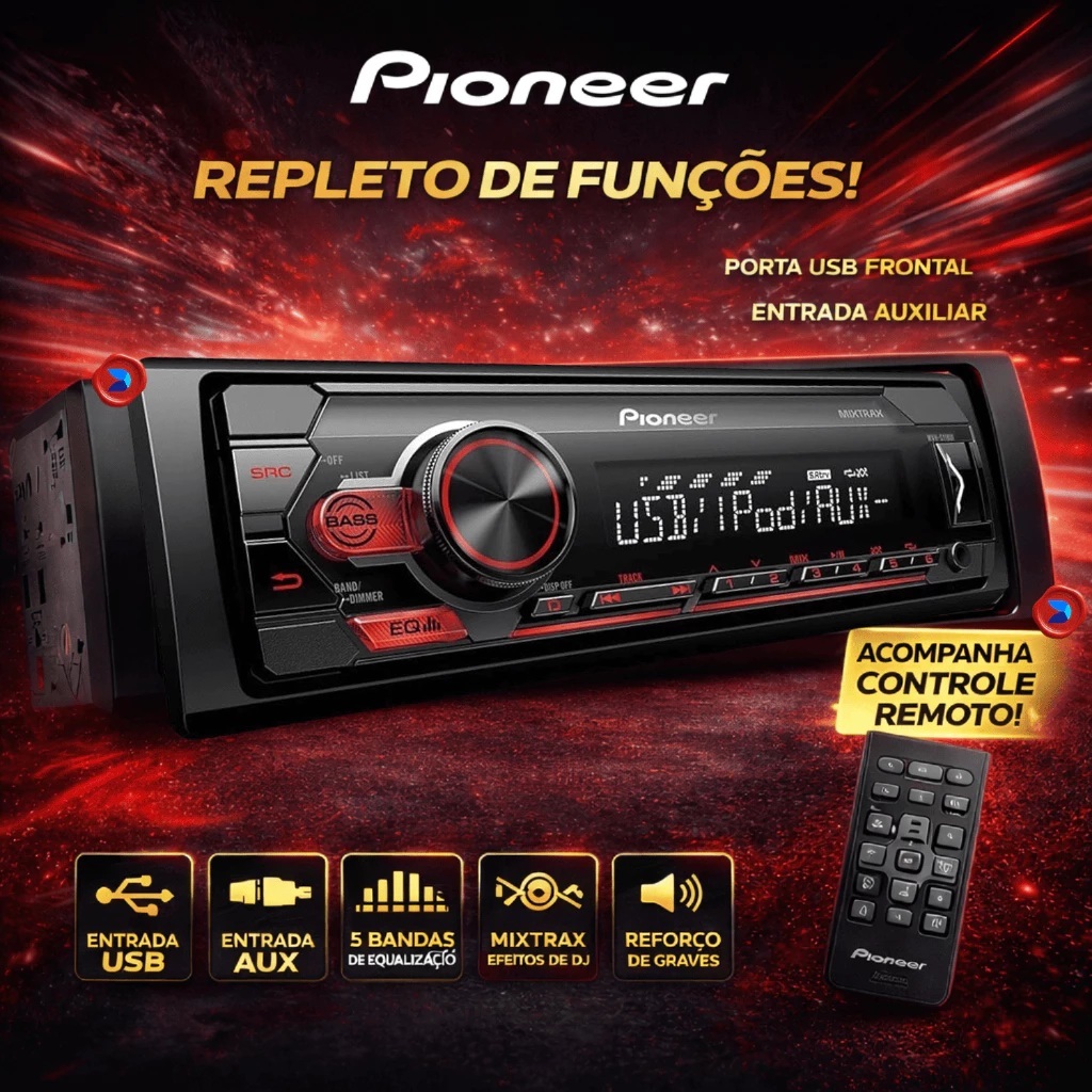 Radio Mídia Receiver Pioneer MVH-S118UI Som Automotivo MIXTRAX