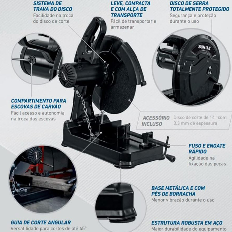 Serra Policorte 14 Pol 2000W Schulz SPS2000 - Corte Rápido e Preciso para Metais e Serralheria