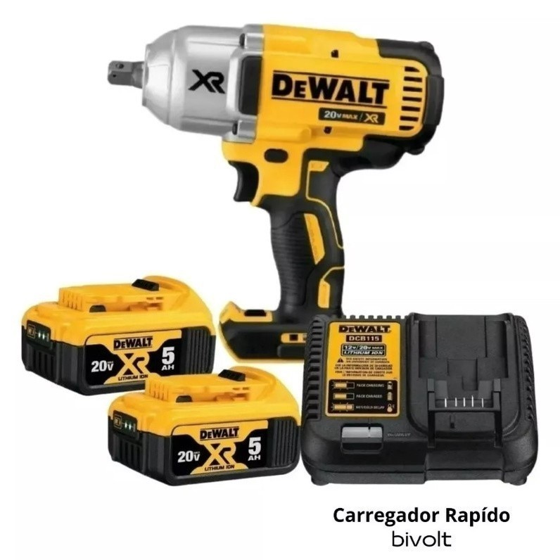 Chave De Impacto 1/2 DCF899 DEWALT + 2 Baterias 5Ah + Carregador Bivolt + Bolsa