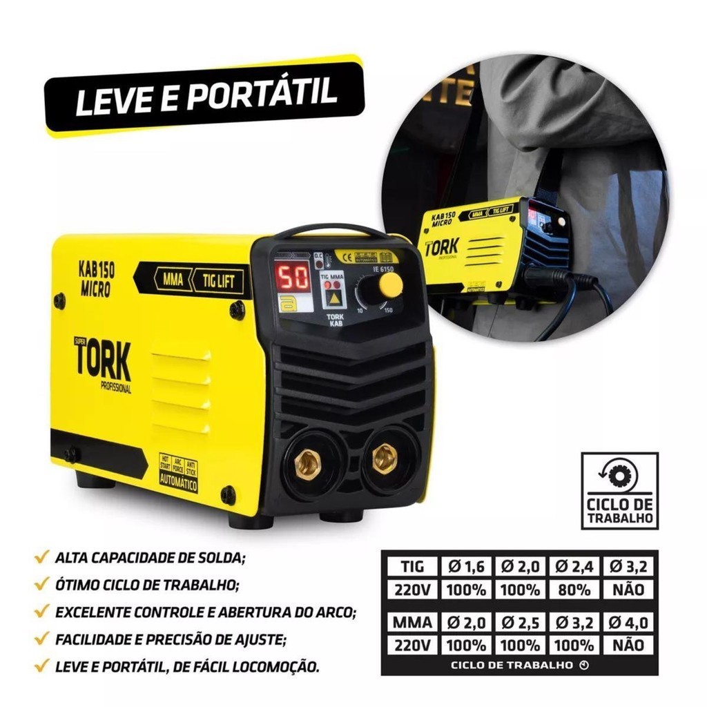 Maquina De Solda Inversora TORK SOLDAS Kab Micro Tig Lift Mma 150a
