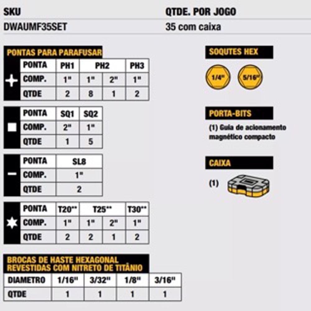 Jogo Bits E Brocas Parafus/furar Maxfit Ultra 35 Pcs Dewalt