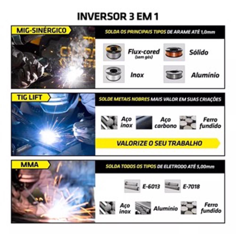 Maquina Solda Inversora Mig Mag Gas Flex 250a Tig Lift Mma - Mes do consumidor